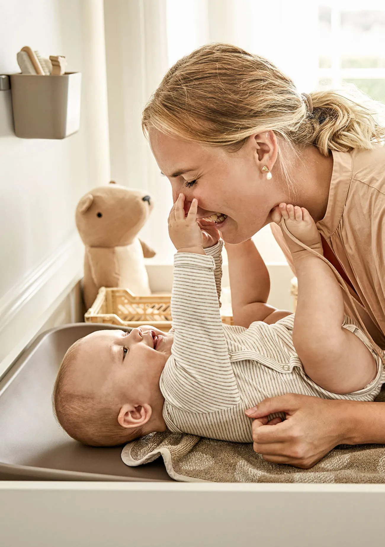 Die Wickelauflage LEANDER Matty™ ist Gewinner des German Design Award 2019 – und das zu Recht! Sie setzt nicht nur neue Standards in puncto sicheres Wickeln, sondern wird zum Lieblings-Wellnessort für dein Baby. Aus sehr weichem PUR-Formschaum in Dänemark gefertigt, fühlt sie sich für dein Baby zart, samtig und warm an und es entsteht ein wunderbar angenehmes Haut-auf-Haut-Gefühl. Ein weiterer Vorteil ist die einfache Reinigung mit Wasser oder einer milden Seifenlauge. Bei Bedarf kann die Auflage sogar mit einem Textiltuch mit Ethanol oder einem alkoholhaltigen Reiniger (max. 70 % Alkohol) desinfiziert werden. Die flexibel einsetzbare Wickelunterlage verfügt über kleine Gummifüße, die für einen stabilen Stand sorgen und ausreichend Luftzirkulation ermöglichen. Wickeln war nie komfortabler!