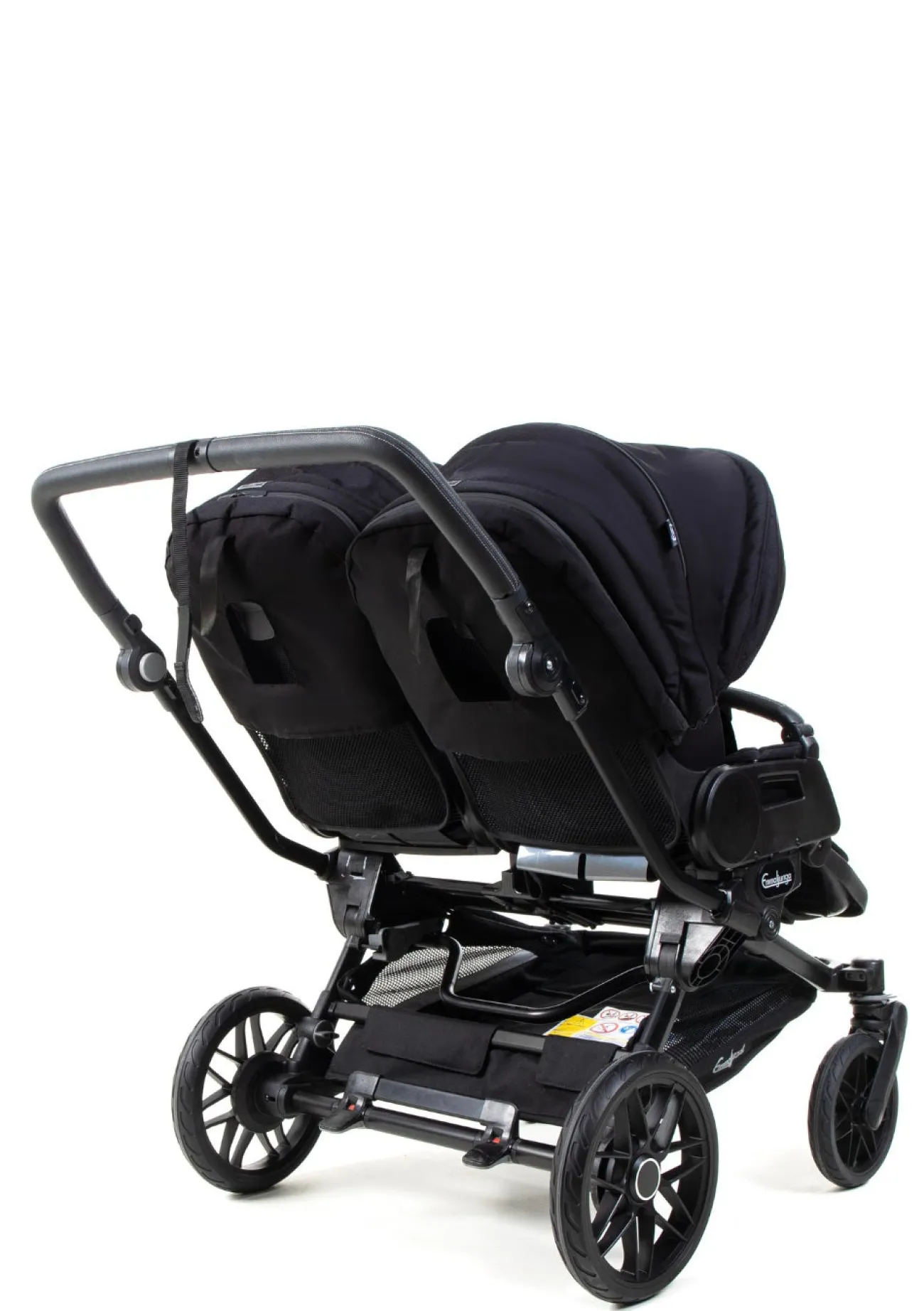 Flexibel, wendig und perfekt auf die Bedürfnisse gleichaltriger Kinder abgestimmt: Dieser Kinderwagen von Emmaljunga wurde für Familien entwickelt, die zwei kleine Wunder erwarten. Das Set besteht aus dem Urban-Gestell, zwei Babywannen und zwei Flat+ Sitzen mit vollständig flacher Liegeposition – so können beide Kinder von Geburt an sicher und bequem nebeneinander unterwegs sein.