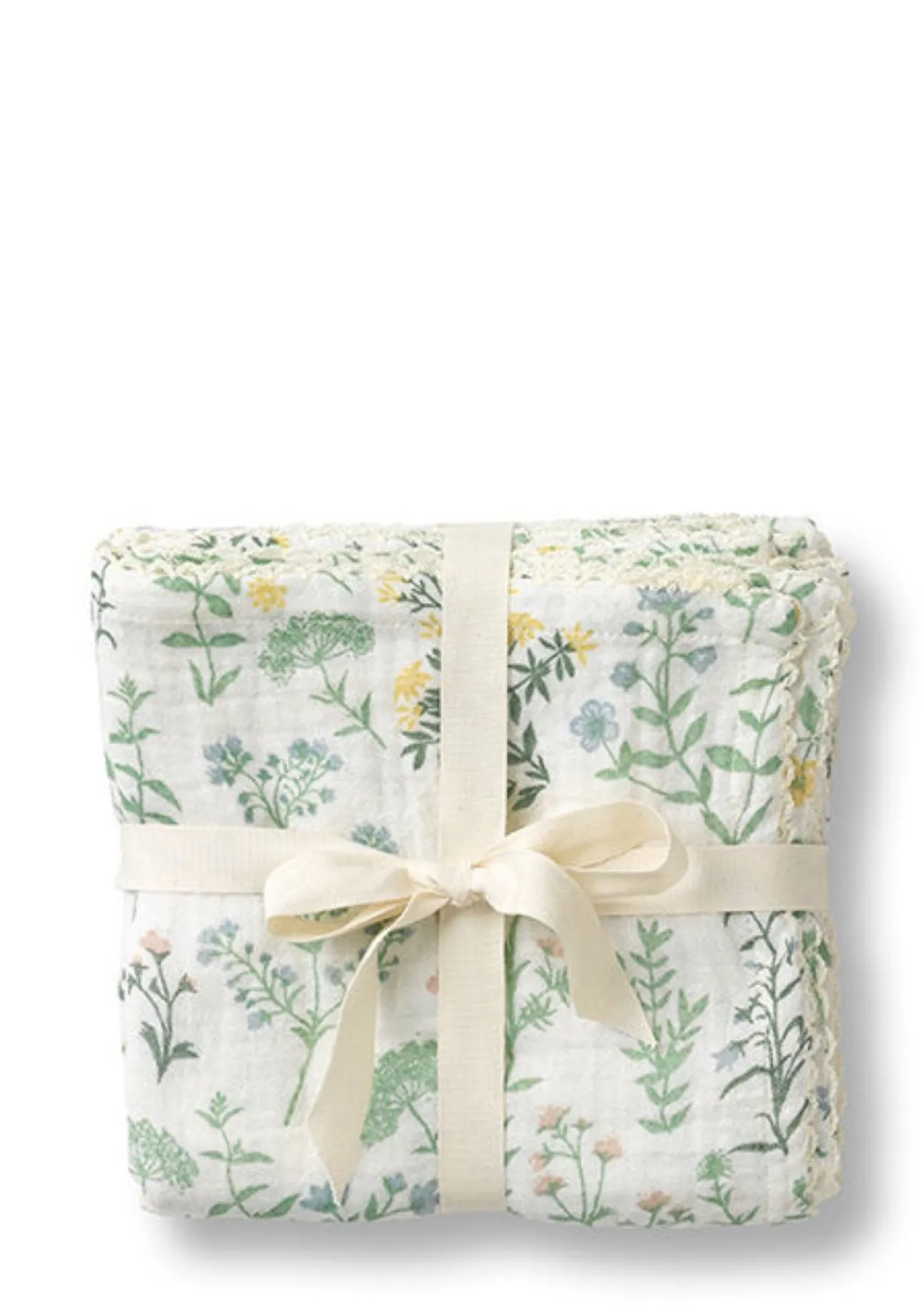 Die Musselintücher sind bereits vorgewaschen und erhalten so ihre besonders weiche, leicht gekräuselte Struktur. Mit jedem weiteren Waschgang werden sie noch softer. Sie kommen im praktischen 3er-Pack, liebevoll mit einer Schleife gebündelt.