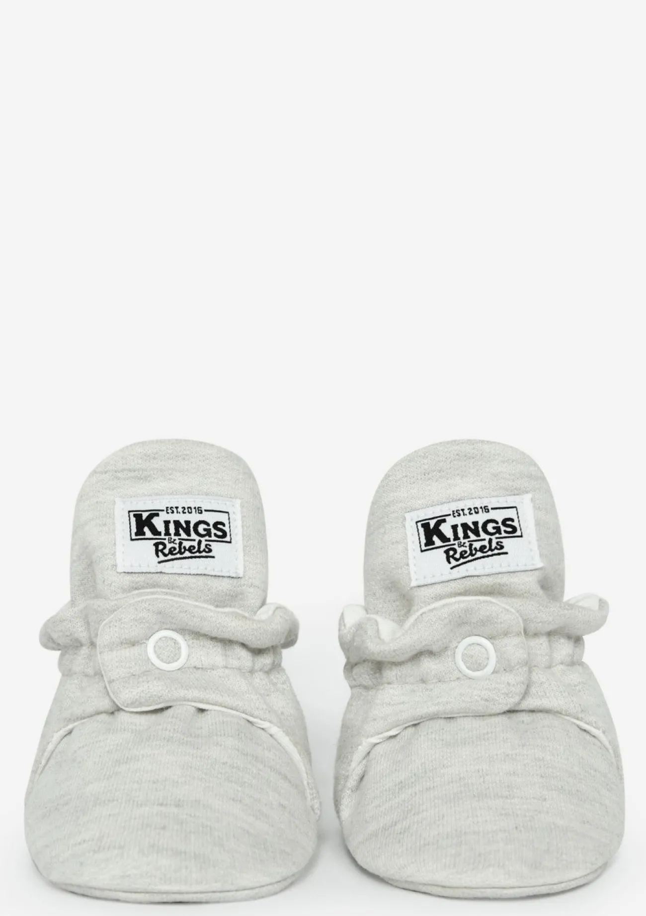 Diese niedlichen Babyschuhe von KINGS & REBELS sind dank des praktischen Druckknopf-Verschlusses ruckzuck über den kleinen, strampelnden Babyfuß gezogen – und rutschen auch nicht wieder ab! Die hautfreundlichen und atmungsaktiven Eigenschaften der umweltfreundlichen Baumwolle erzeugen ein besonders angenehmes Tragegefühl. Da sich die Booties an die individuelle Fußform deines Kindes anpassen, schränken sie die gesunde Entwicklung der Kinderfüße nicht ein und sind superbequem.