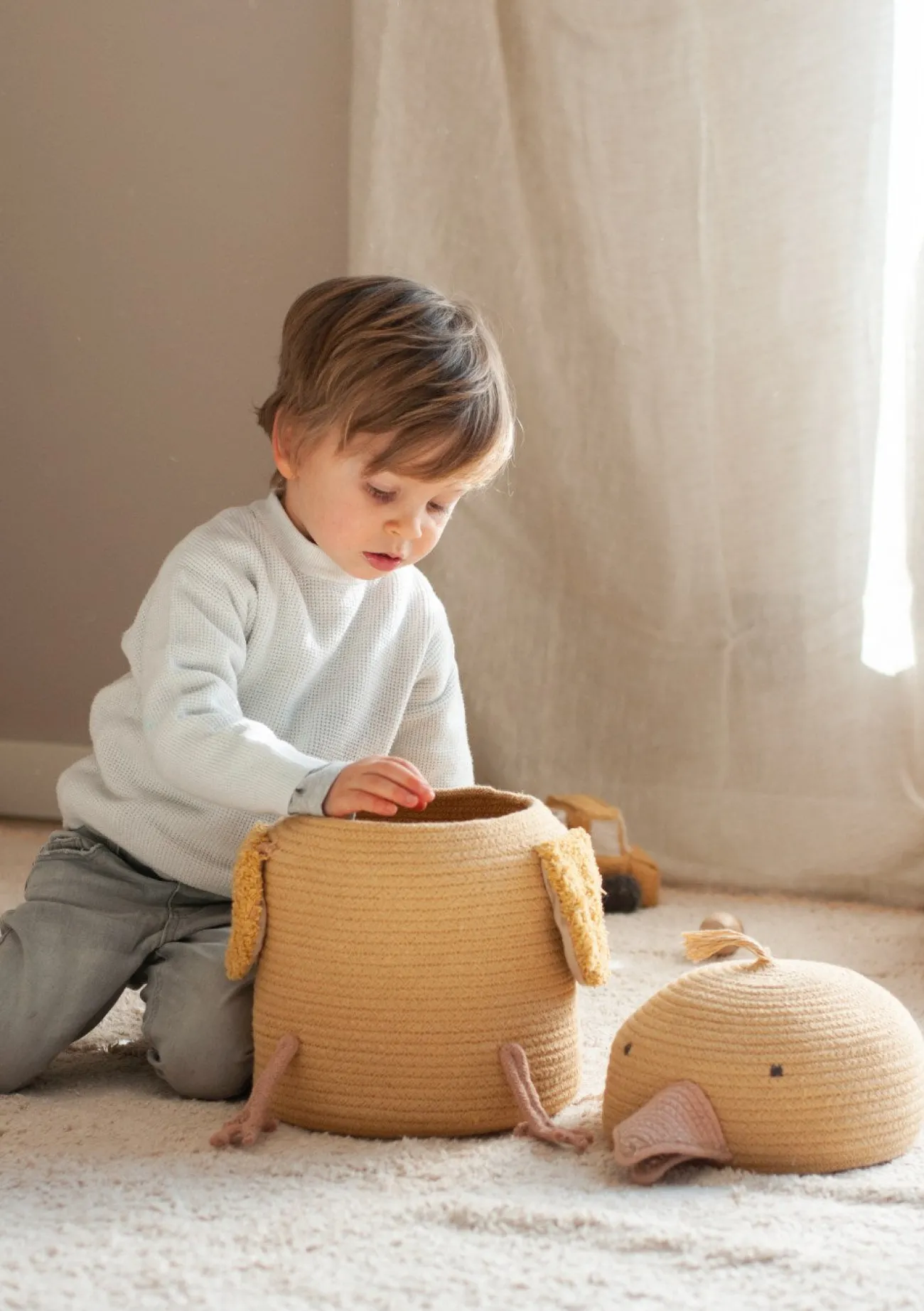 Ob Kuscheltiere, Bausteine oder kleine Schätze – im niedlichen Aufbewahrungskorb Charlie von LORENA CANALS finden Spielsachen nicht nur ein Zuhause, sondern auch ein tierisch niedliches Versteck. Das süße Körbchen in Küken-Gestalt bietet Stauraum und lässt sogar die Kleinsten Freude am Aufräumen empfinden.
