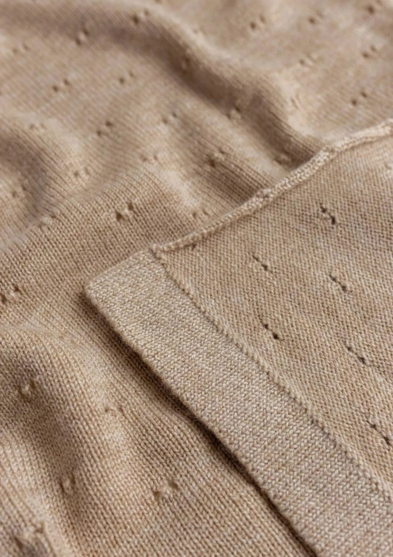 Diese kuschlige Decke von HVID hält dein Baby warm und geborgen. Die Wolle des Merinoschafs ist unglaublich weich und angenehm auf der Haut. Mit dem eingewebten Muster ist dieses Accessoire ein echter Hingucker!