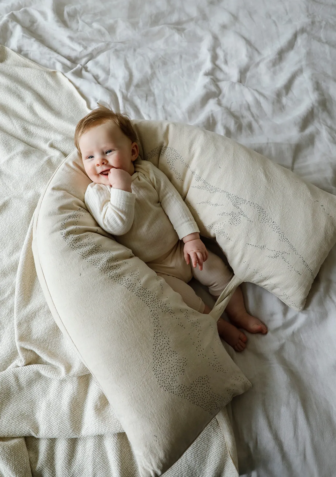 Dieses Stillkissen von NANAMI unterstützt dich bereits während und nach der Schwangerschaft! Es bietet unglaublich viele verschiedene Möglichkeiten und ist dank des angenehmen Stoffs ein Accessoire zum Wohlfühlen! In der Schwangerschaft hilft es dir eine angenehme Schlafposition zu finden, damit du wieder entspannt träumen kannst. Ist euer Baby da, kannst du es als Stütze beim Stillen verwenden, um deine Arme zu entlasten. Natürlich kann man sich auch wunderbar daran anlehnen oder es zusammen knöpfen und es für euer Baby in ein Nestchen voller Geborgenheit umwandeln.