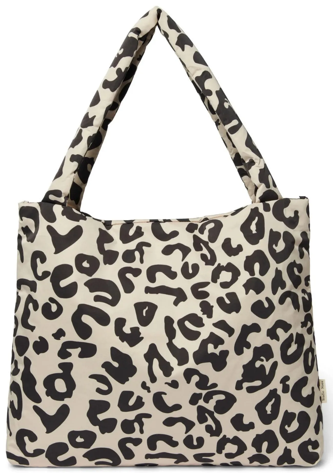 Die erste wirklich trendige Wickeltasche! Die wattierte Tasche von STUDIO NOOS sieht eher wie ein netter Shopper aus, nicht wie eine klassische Wickeltasche. Das Besondere an diesem Modell: Die Tasche lässt sich durch die langen Henkel einfach am Kinderwagen-Lenker aufhängen.