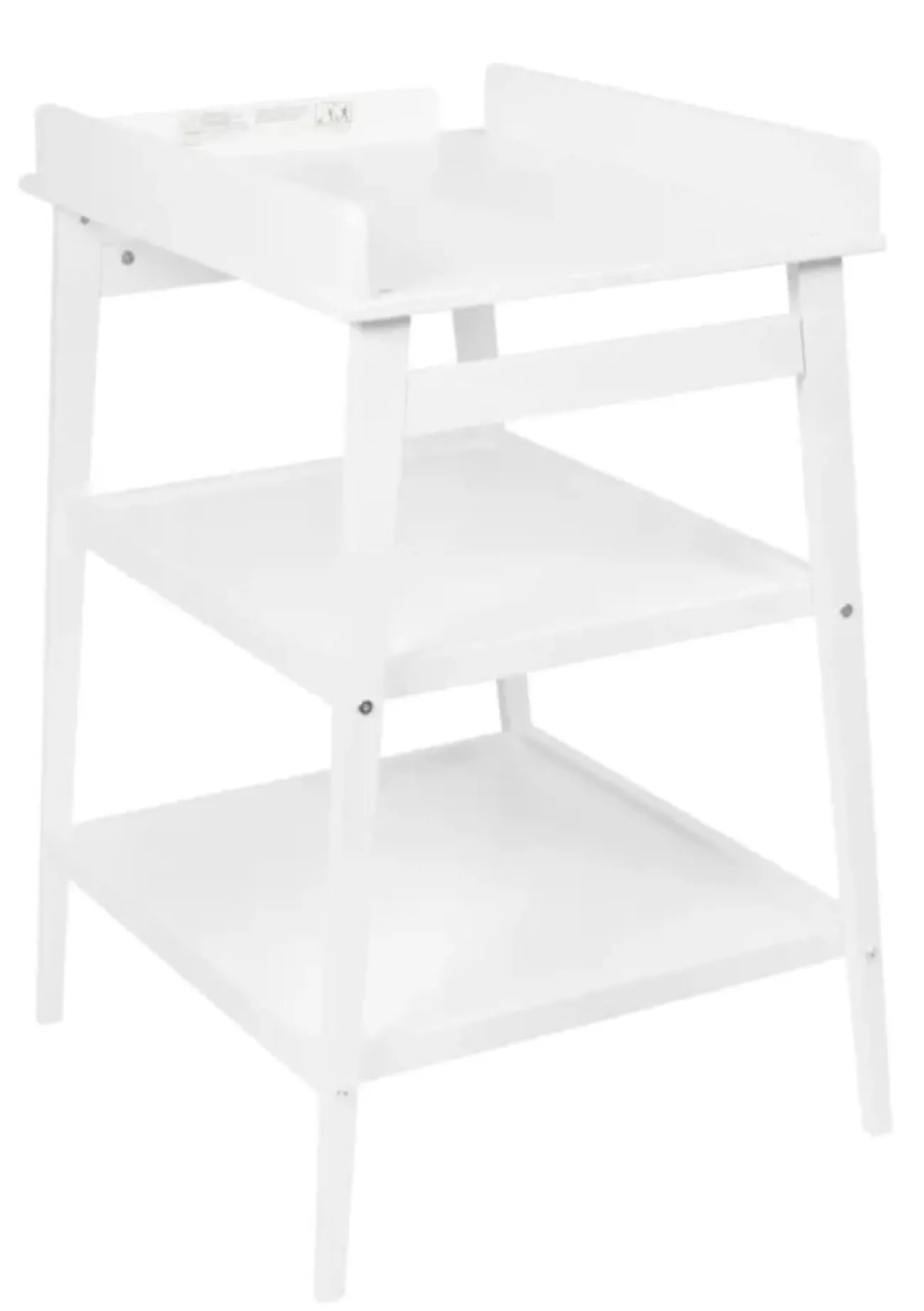 - ein Wickeltisch mit zwei Ablageflächen unter der Tischplatte
