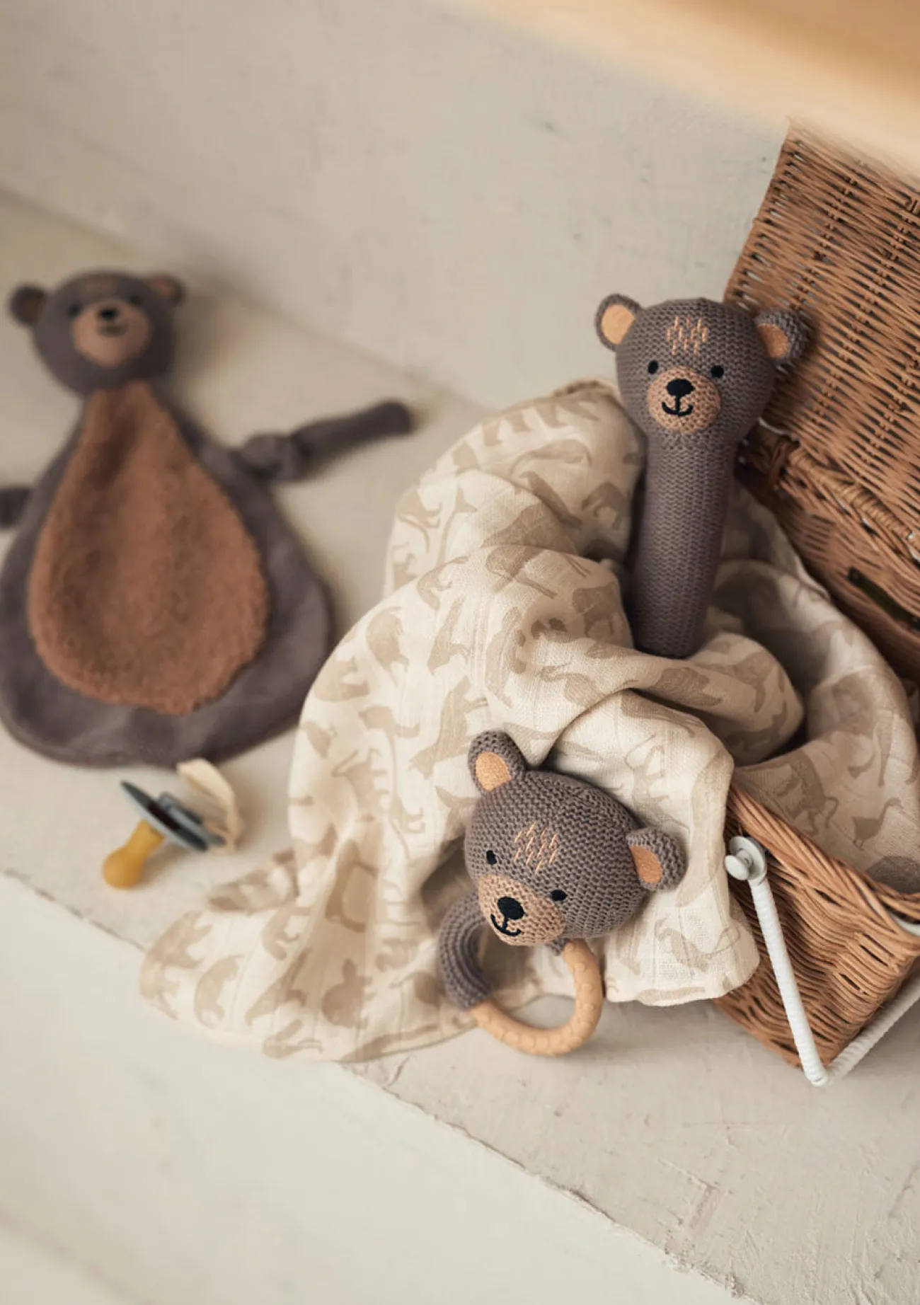 Diese süße Babyrassel hat eine angenehm weiche Strickoptik und ist selbst für die Kleinsten gut zu halten. Ein kleines Glöckchen im Inneren erzeugt beim Bewegen schöne Klänge und sorgt so für entzückende Unterhaltung.