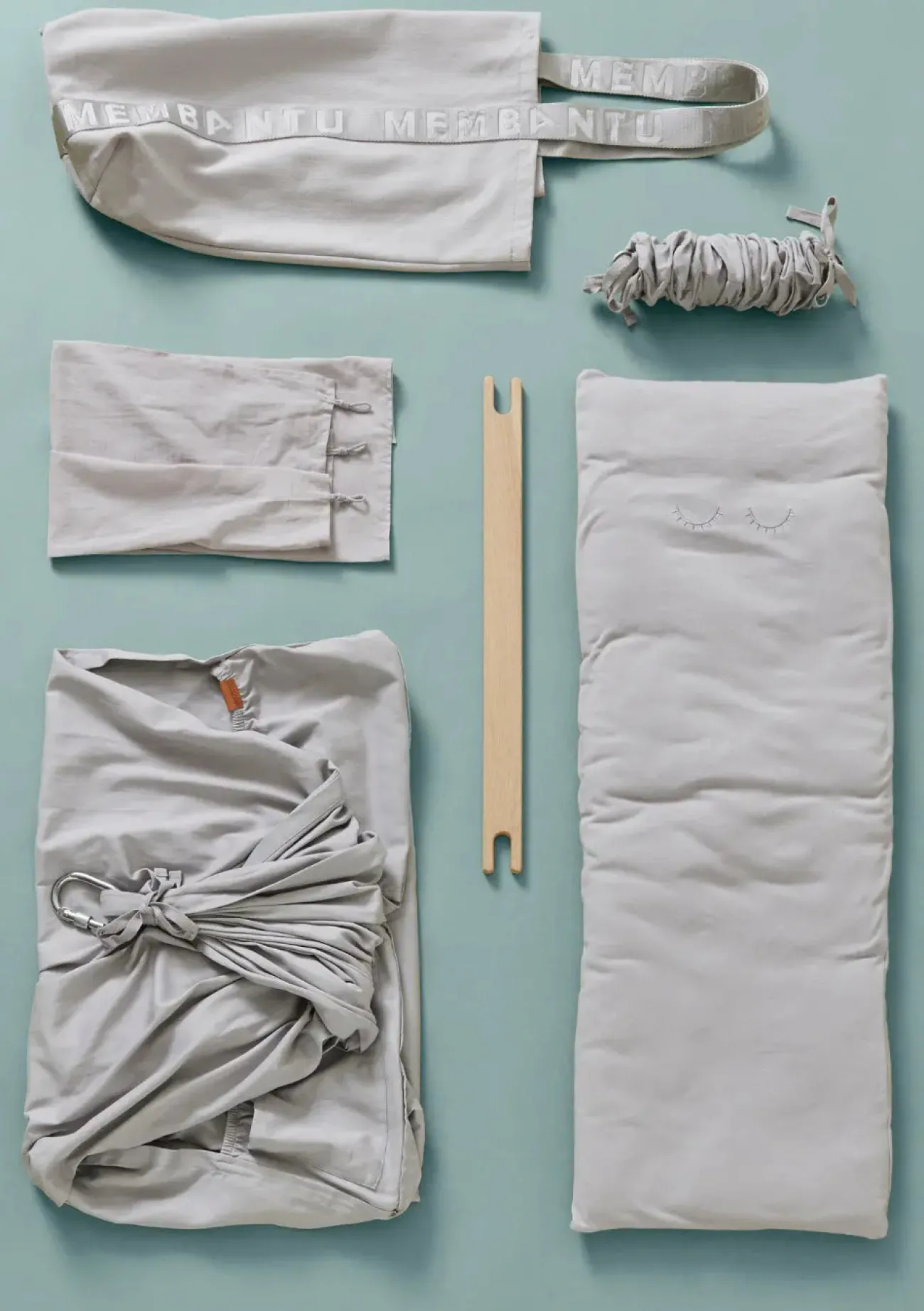 - Premium-Federwiege aus ökologischer Baumwolle inkl. Querstange, Feder mit Sicherungsgurt, Stoffbeutel, Woll-Matratze mit abnehmbarem Bezug, Spannbettlaken mit Stickerei, Karabiner mit Schraubverschluss und Gummiisolierung