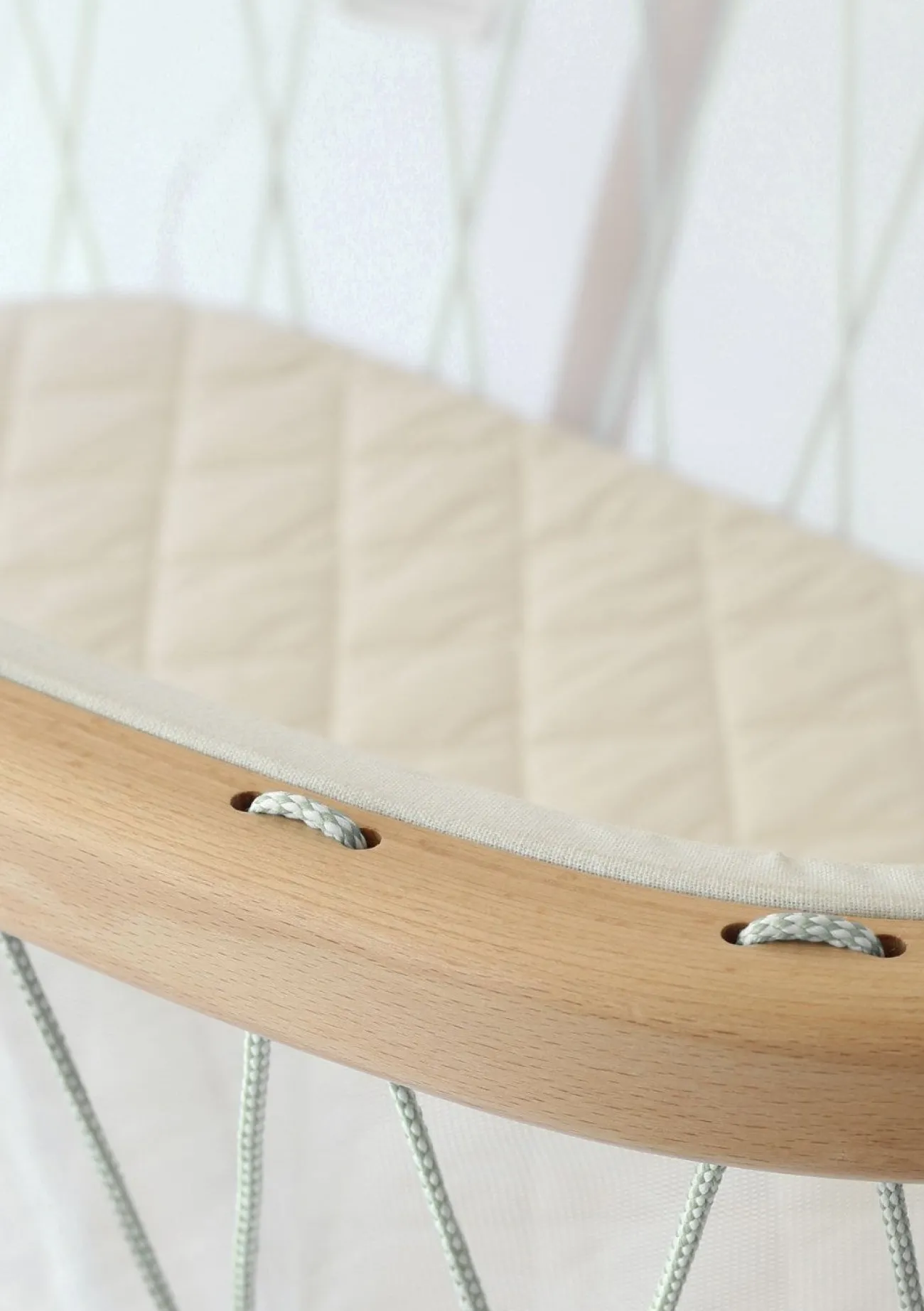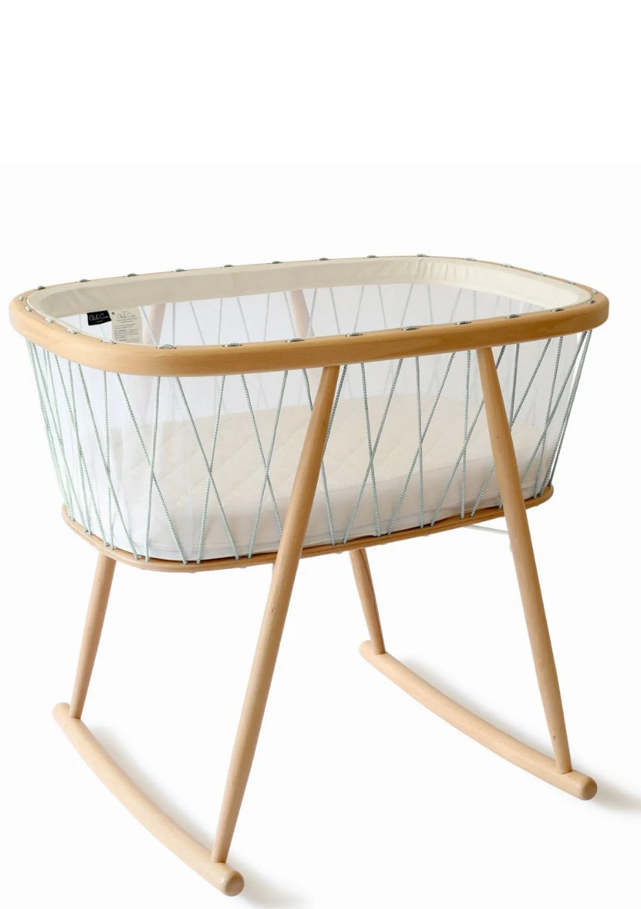 Das Babybettchen ist nach der Zeit im Mutterleib der zentrale Ort für dein Kleines. Diese anmutige Babywiege ist ein stilvoller und zuverlässiger Begleiter für die ersten Monate nach der Geburt. Das hochwertige Wiegengestell wird von einem filigranem Schnürgeflecht ergänzt. Dieses interessante Zusammenspiel erzeugt eine besondere Leichtigkeit und verleiht der Wiege das gewisse Etwas. Die Schnürung nehmen die werden Eltern beim Aufbau des Bettchens übrigens selbst vor. Dem Designer zufolge soll dies den Nestbau versinnbildlichen. Was für eine schöne Idee!