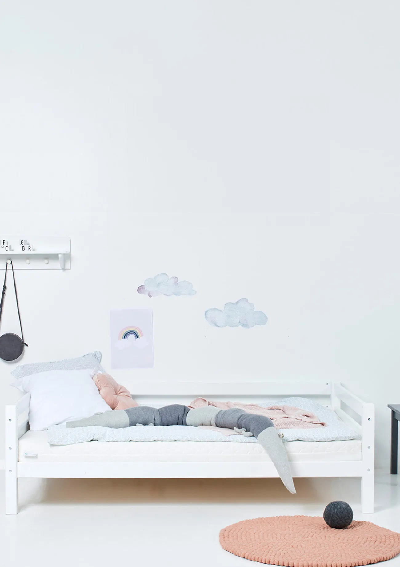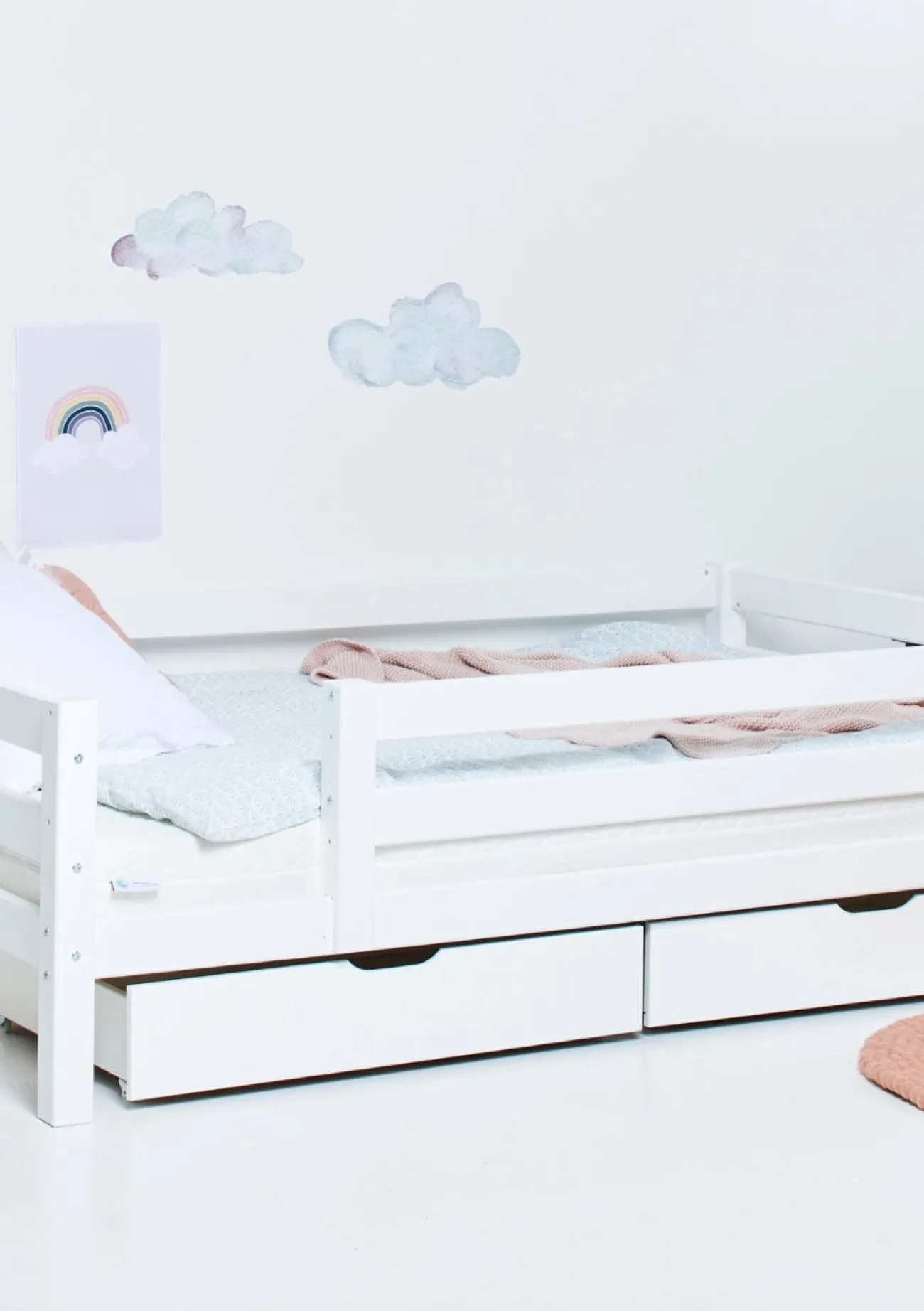 - je nach Alter des Kindes/Sicherheitsbedürfnis optional mit einem Bettschutzgitter in verschiedenen Größen erhältlich: ohne Rausfallschutz, mit kleinem oder großem Rausfallschutz (bitte geeignete Variante auswählen!)