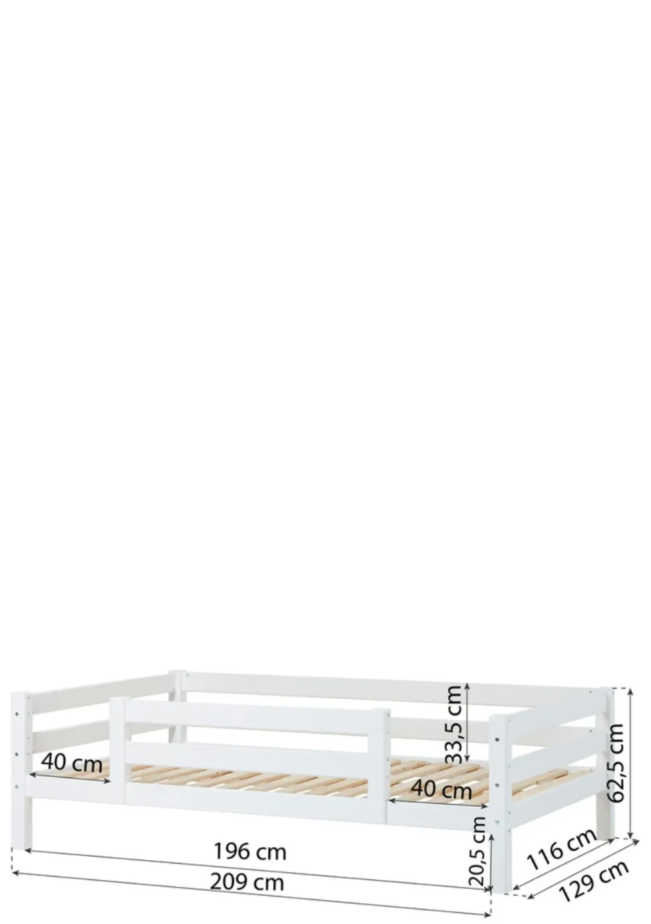 - Bettmaße: L 209 x H 62 x T 129 cm