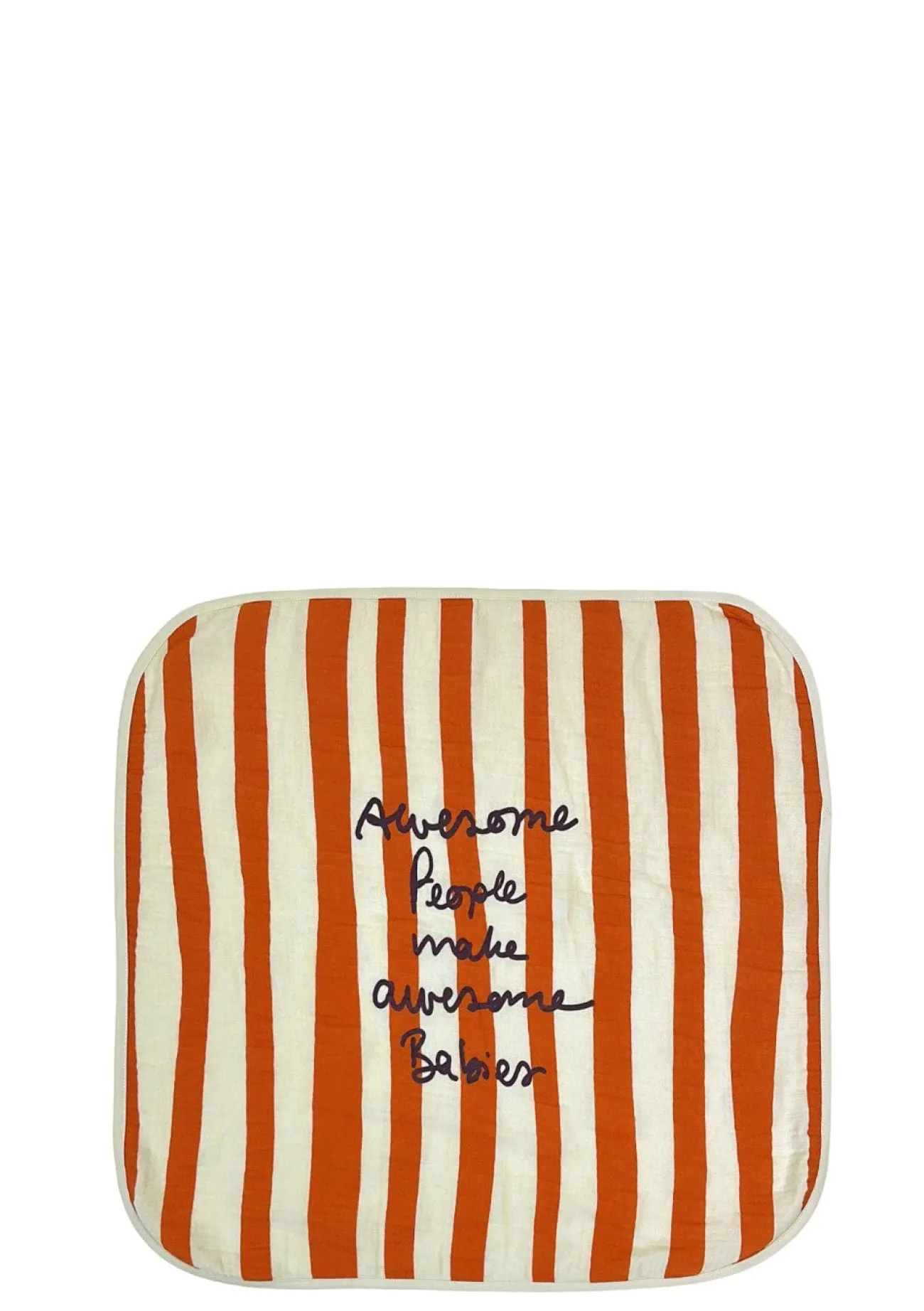 Die stilvollen Blockstreifen sorgen für einen modernen Look, während das Statement „Awesome People make awesome Babies“ Eltern schmunzeln lässt und das Tuch zu etwas ganz Besonderem macht. Eine wunderschöne kleine Geschenkidee zur Geburt oder als liebevolles Extra für den Alltag.