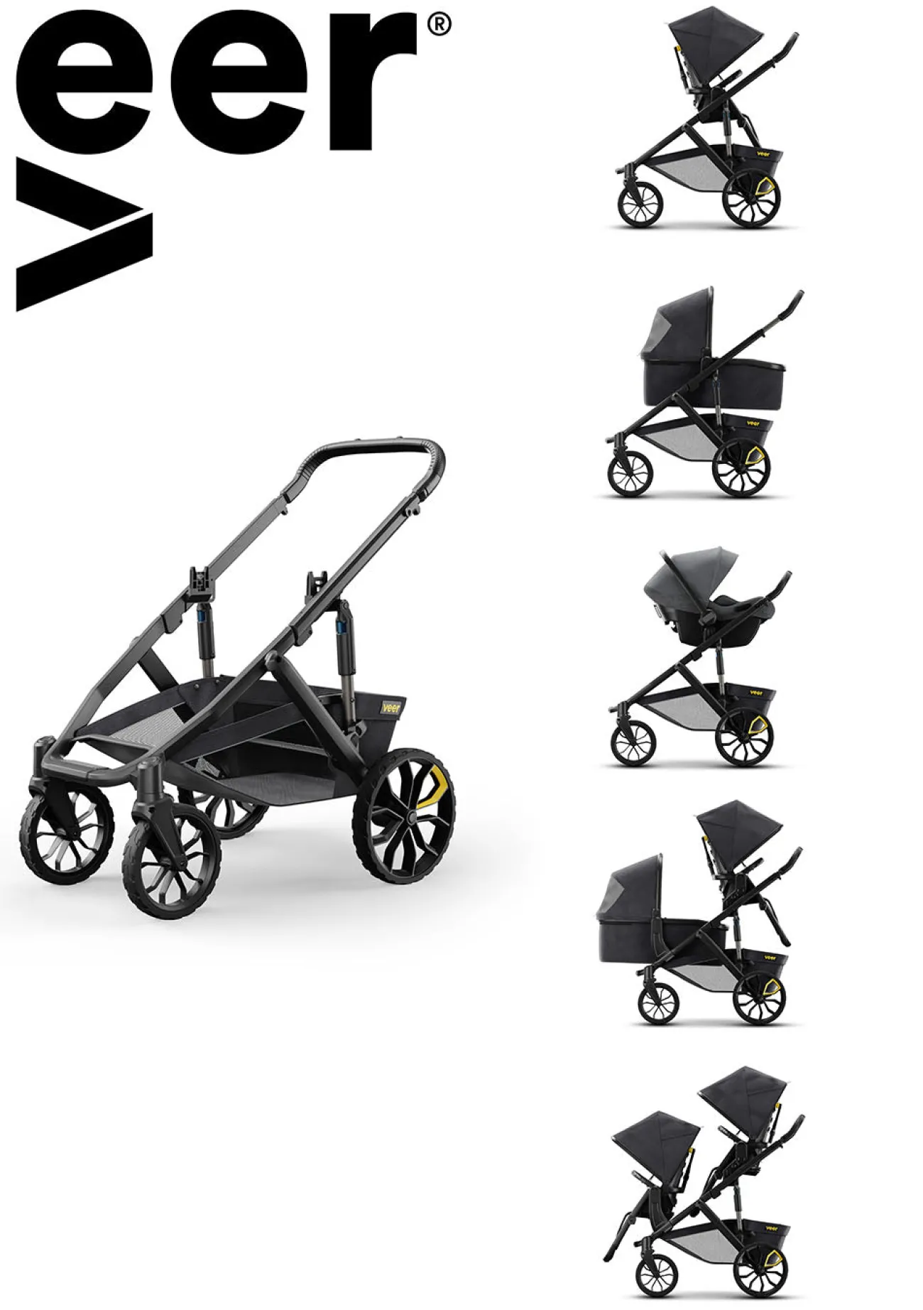 Ob durch die Stadt oder durch den Wald – das &Roll Gestell von VEER lässt sich auf jedes Abenteuer ein! Durch die eingebaute 6-Stufen-Federung erobert ihr mit eurem kleinen Schatz komfortabel jedes Terrain. Das Gestell überzeugt nicht nur durch die Heck- und Frontfederung, den unplattbaren Reifen, der leichten Wendigkeit und der verstellbaren Griffhöhe sondern auch durch das zeitlose Design.