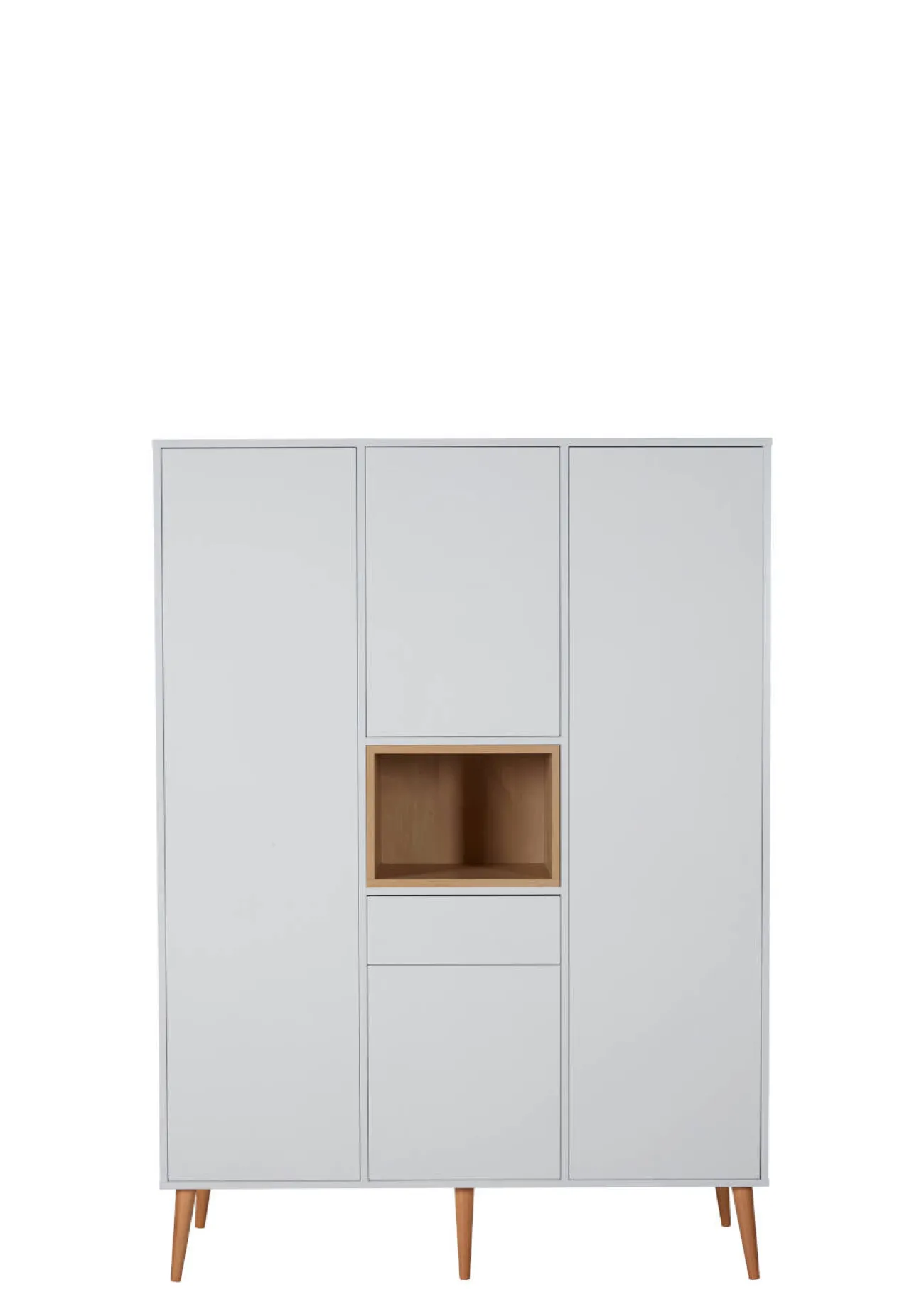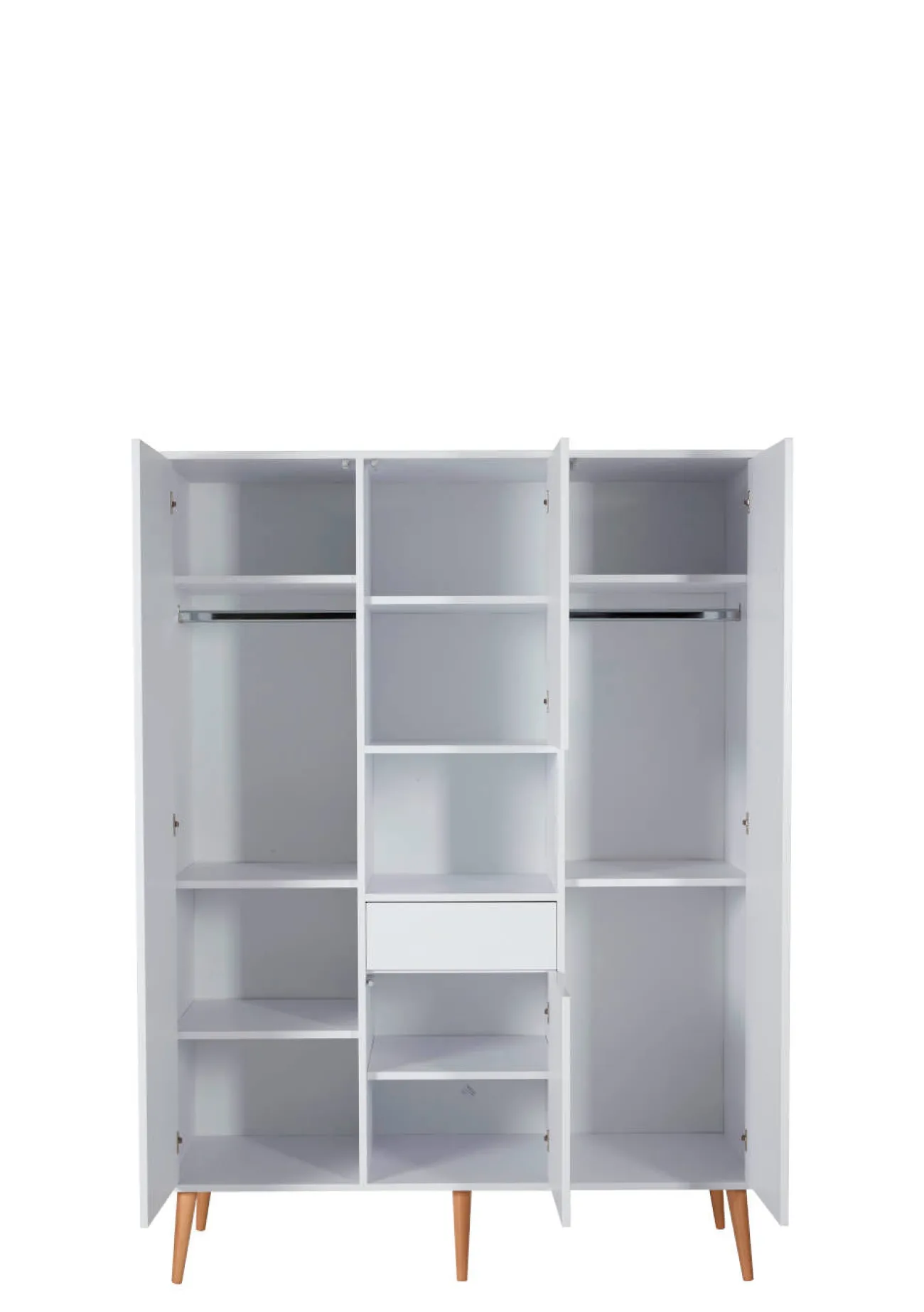 - Sieben variable Einlegeböden, zwei Kleiderstangen und ein offenes Fach