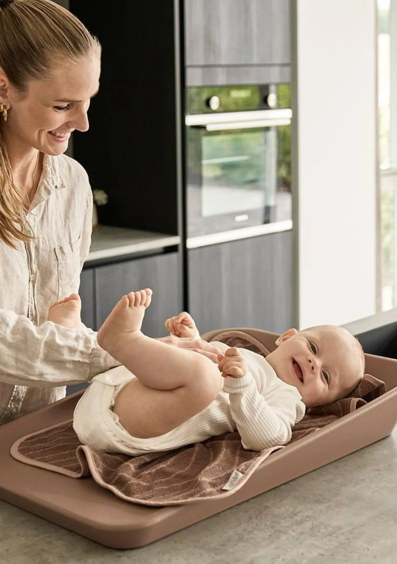 Die Wickelauflage LEANDER Matty™ ist Gewinner des German Design Award 2019 – und das zu Recht! Sie setzt nicht nur neue Standards in puncto sicheres Wickeln, sondern wird zum Lieblings-Wellnessort für dein Baby. Aus sehr weichem PUR-Formschaum in Dänemark gefertigt, fühlt sie sich für dein Baby zart, samtig und warm an und es entsteht ein wunderbar angenehmes Haut-auf-Haut-Gefühl. Ein weiterer Vorteil ist die einfache Reinigung mit Wasser oder einer milden Seifenlauge. Bei Bedarf kann die Auflage sogar mit einem Textiltuch mit Ethanol oder einem alkoholhaltigen Reiniger (max. 70 % Alkohol) desinfiziert werden. Die flexibel einsetzbare Wickelunterlage verfügt über kleine Gummifüße, die für einen stabilen Stand sorgen und ausreichend Luftzirkulation ermöglichen. Wickeln war nie komfortabler!