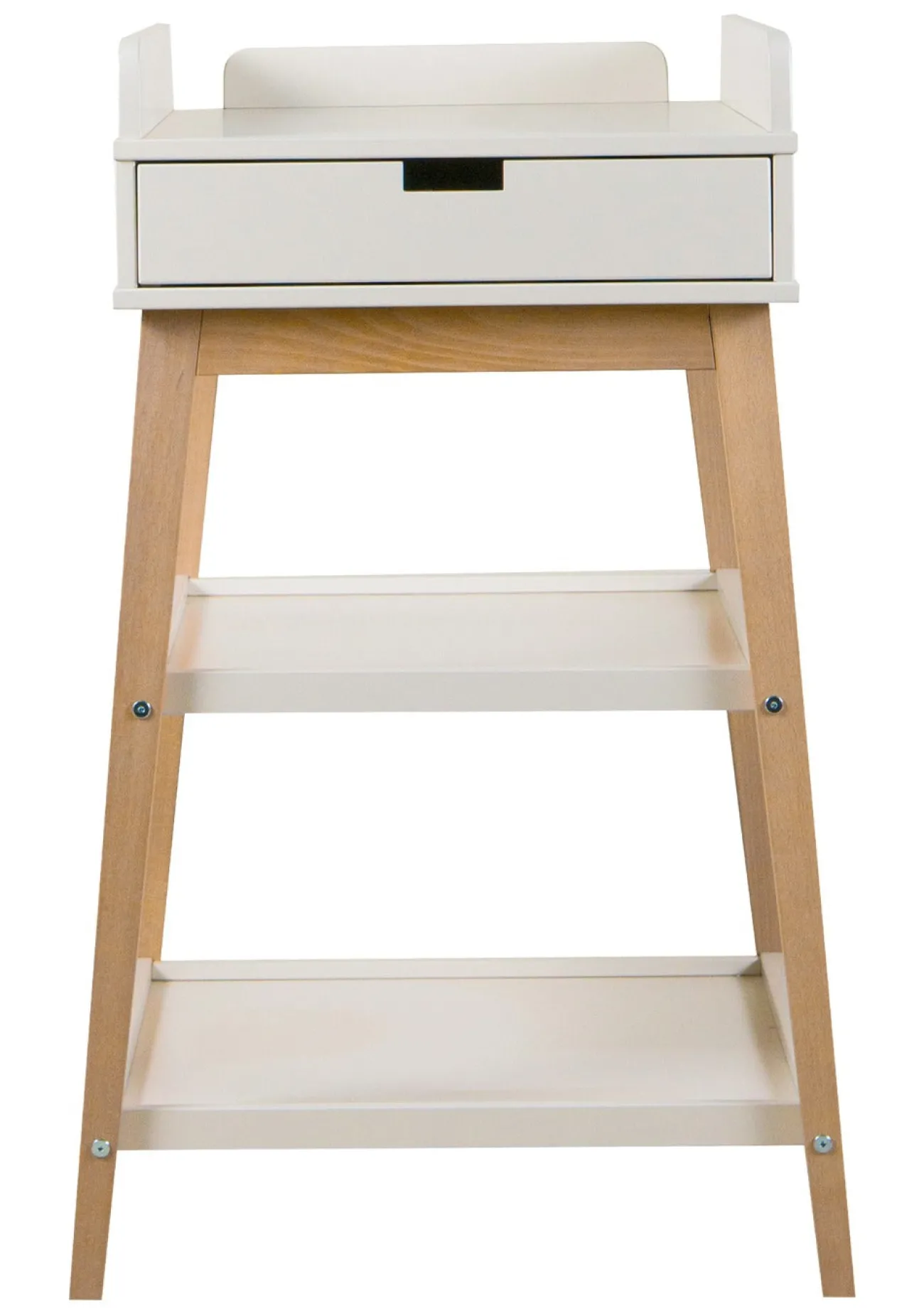Eine platzsparende Alternative zur klassischen Wickelkommode ist ein kompakter Wickeltisch. Dieses zeitlos schöne Modell kommt vom belgischen Label QUAX und versprüht skandinavische Leichtigkeit. Die Tischplatte ist mit erhöhten Seitenrändern ausgestattet, damit dein kleiner Schatz beim Wickeln besser geschützt ist. Windeln, Pflegeprodukte und Co. finden auf den beiden praktischen Ablageflächen ihren festen Platz und sind so jederzeit griffbereit.