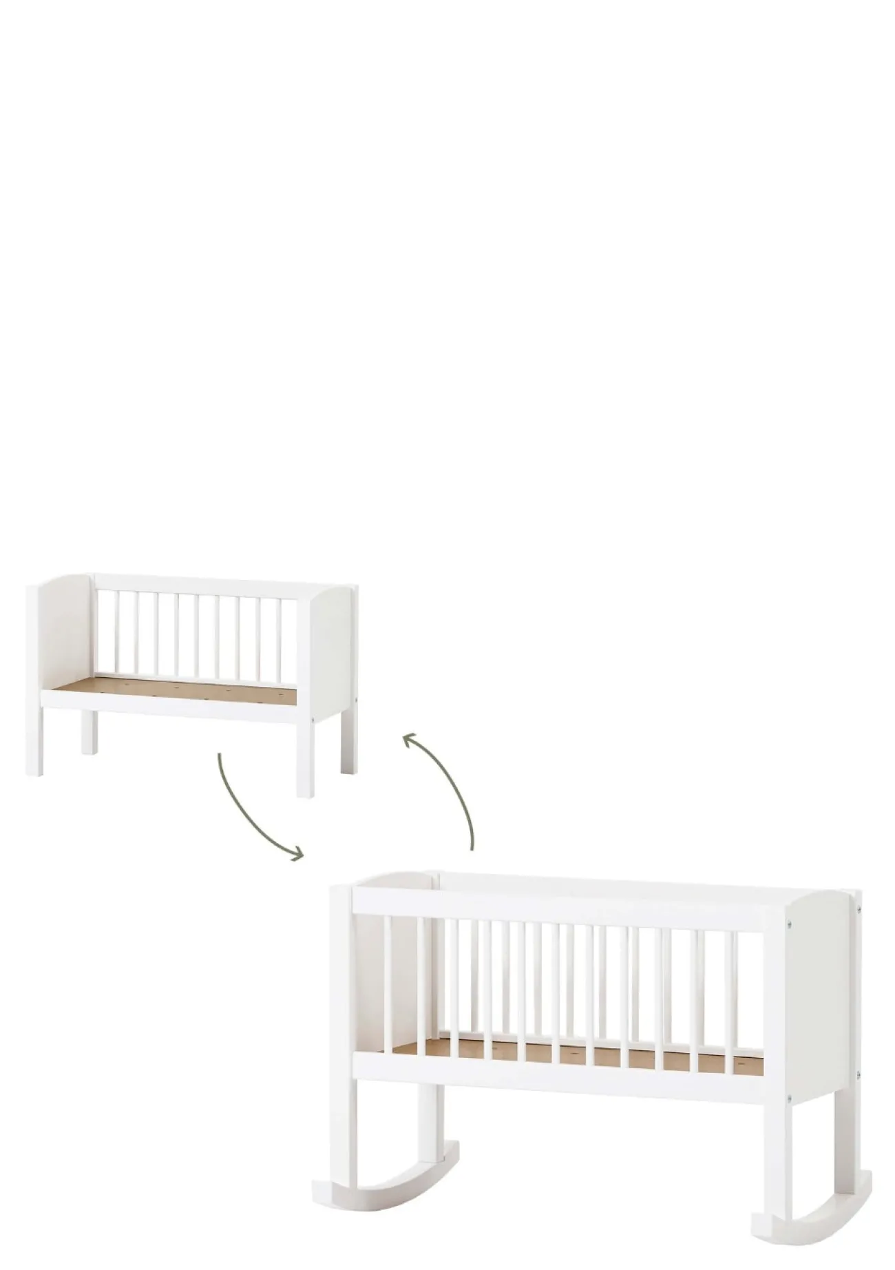 - klassische Babywiege, die sich zur Kinderbank umbauen lässt