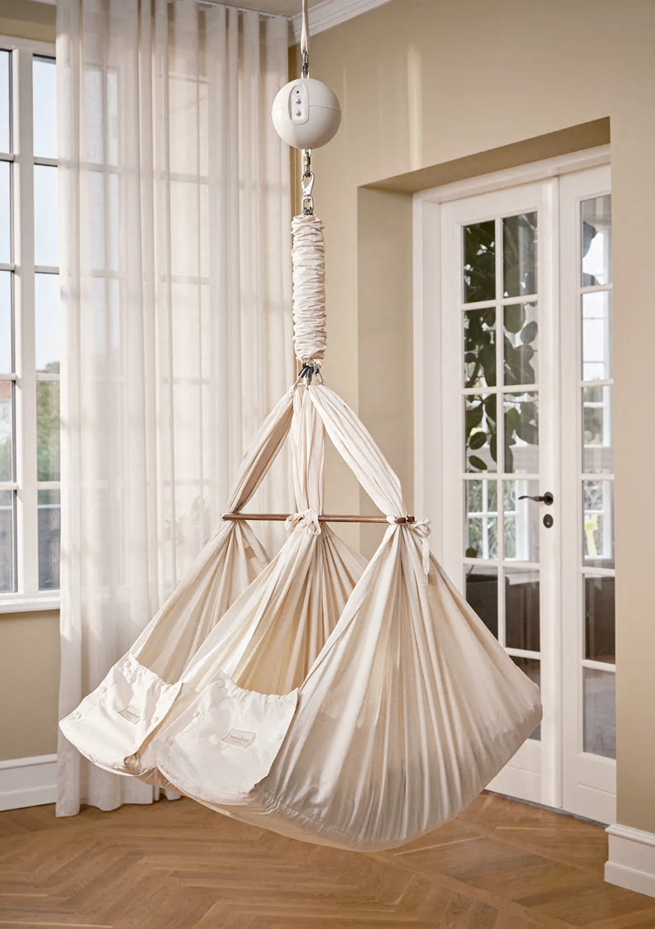- die Wiege kann freihängend oder mit dem stilvollen Gestell in weiß oder grau verwenden werden (separat erhältlich)