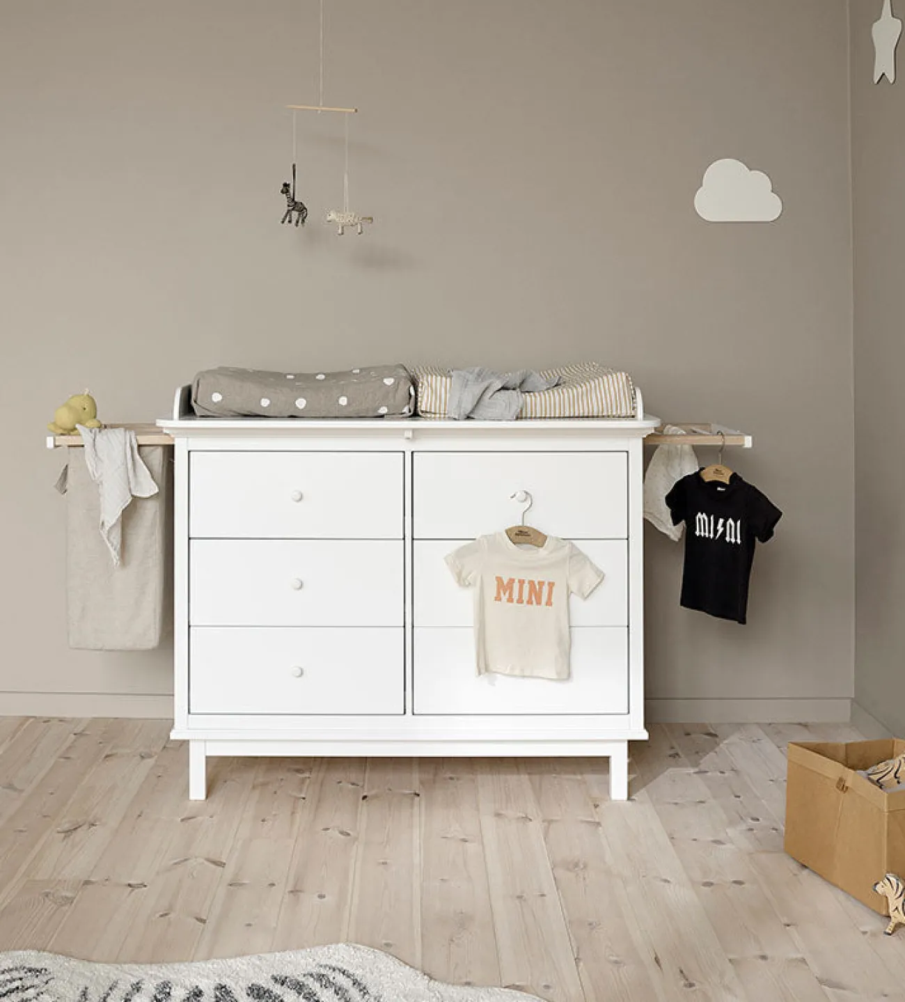 Eine tolle Ergänzung zu eurer Seaside Wickelkommode mit 6 Schubladen von OLIVER FURNITURE! Die Seiten Kommode können mit zwei zusätzlichen Auszügen ausgestattet werden, die unter der Wickelplatte integriert werden. So schafft ihr noch mehr Stauraum.