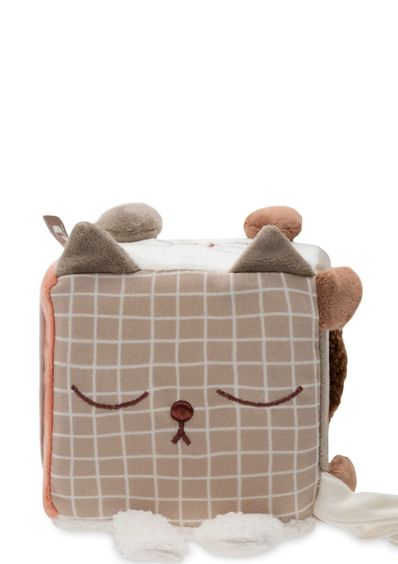 Versteckte Knisterelemente, ein kleiner Spiegel, Schlaufen zum Greifen und süße Tierfreunde machen den Würfel zu einem abwechslungsreichen Spielzeug, das Babys Neugier weckt und lange begeistert – ob zuhause, unterwegs oder als liebevolle Geschenkidee zur Geburt.
