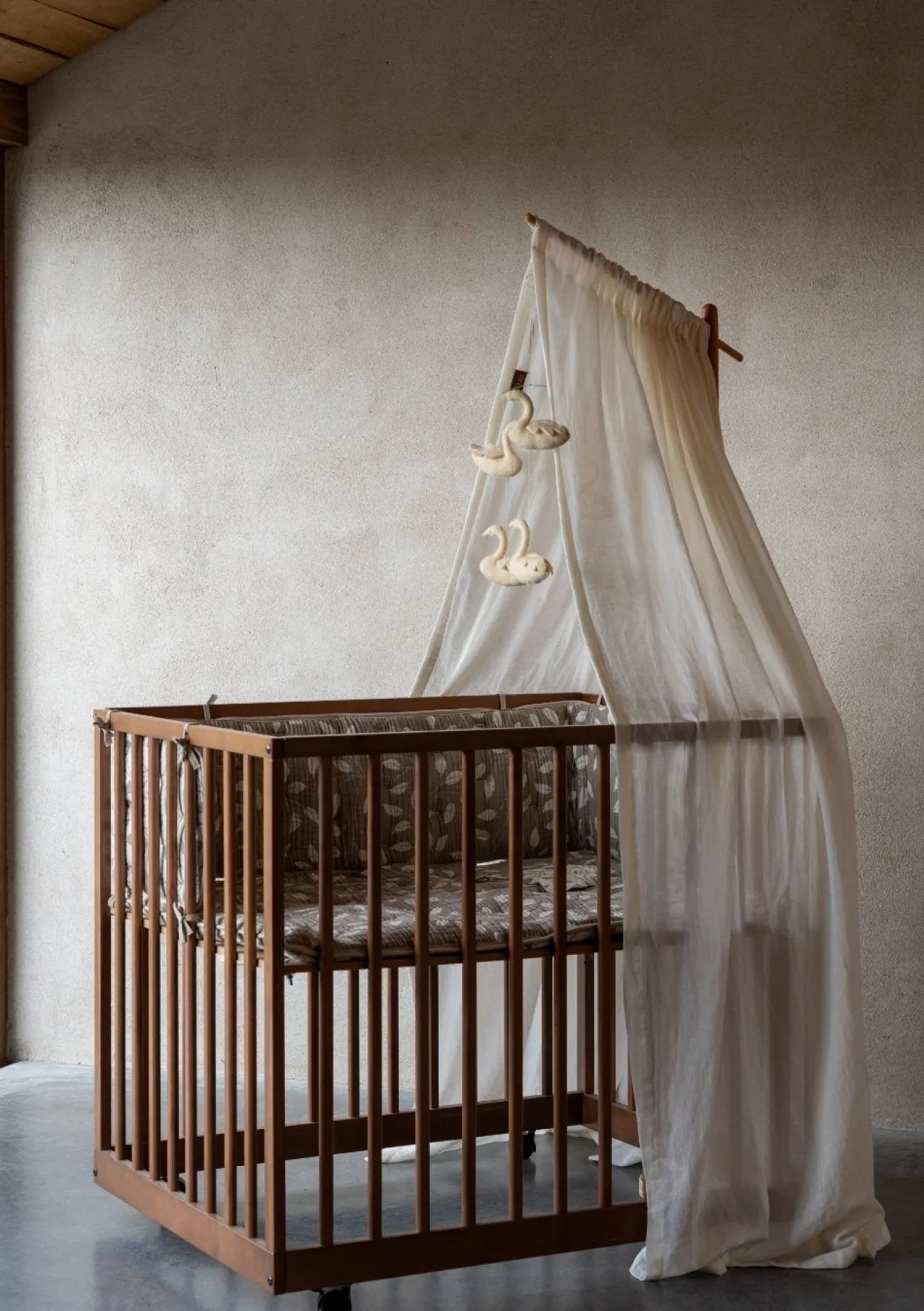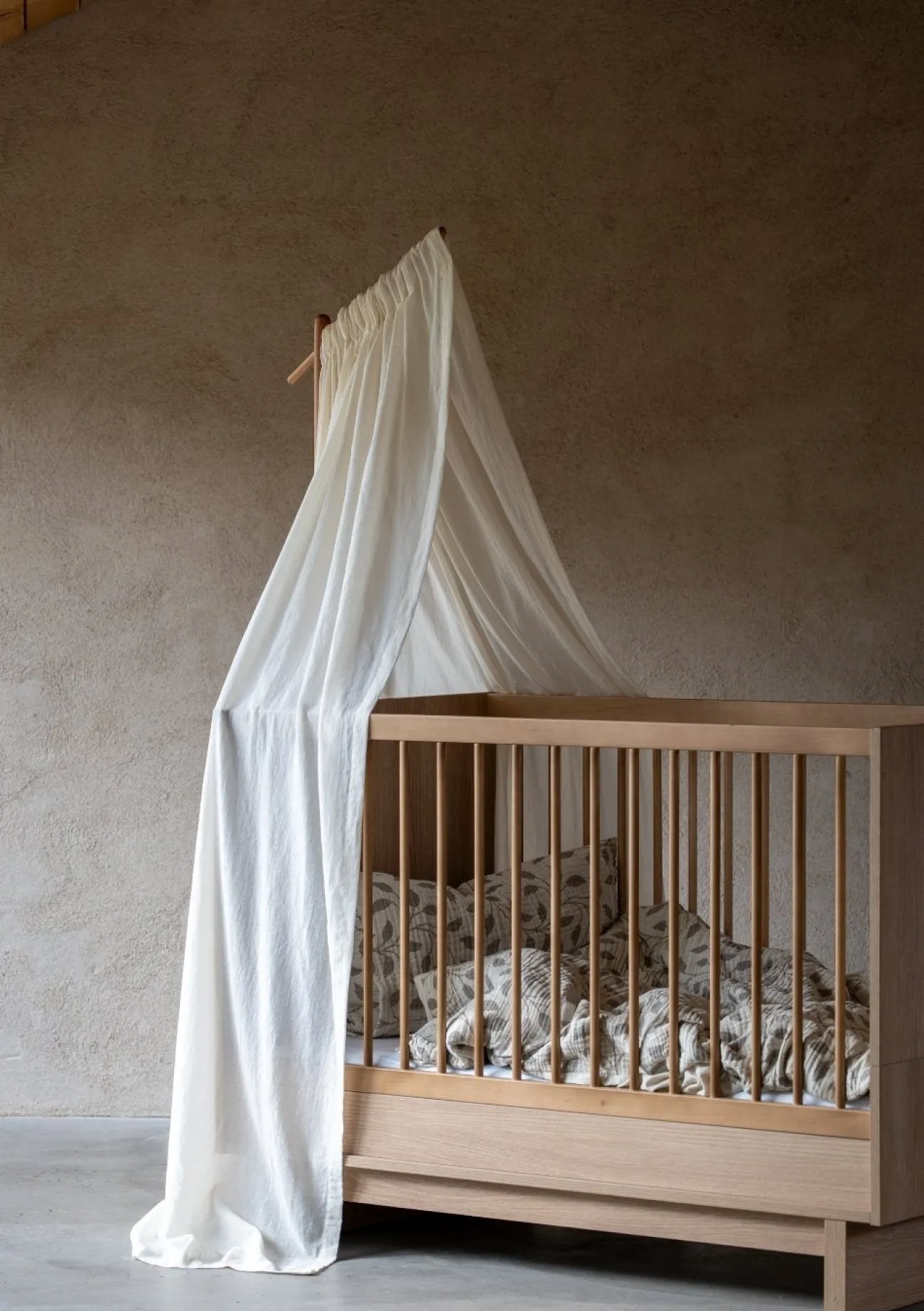 Sanfter Akzent fürs Babyzimmer: der Betthimmel für den Holzständer von QUAX