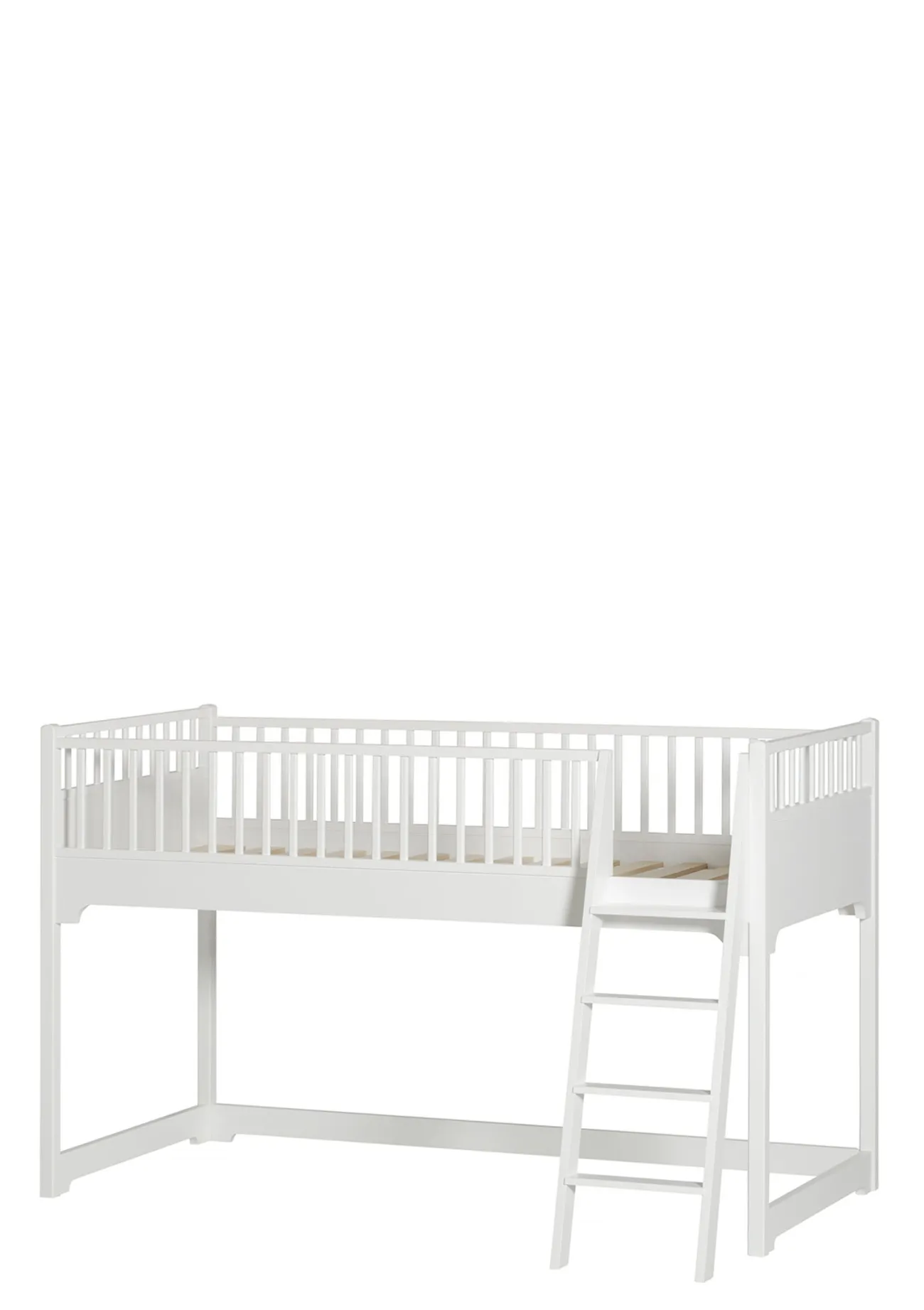 Das halbhohe Hochbett aus der Seaside Collection von OLIVER FURNITURE bietet eine einzigartige Möglichkeit, nicht nur einen schönen Schlafplatz im Kinderzimmer zu gestalten, sondern auch das kindliche Bedürfnis nach Nähe, Komfort und Sicherheit zu erfüllen. Unter dem Bett kann dein Kind ein kleines gemütliches Versteck zum Spielen oder Entspannen bauen, oder einen Freund übernachten lassen.