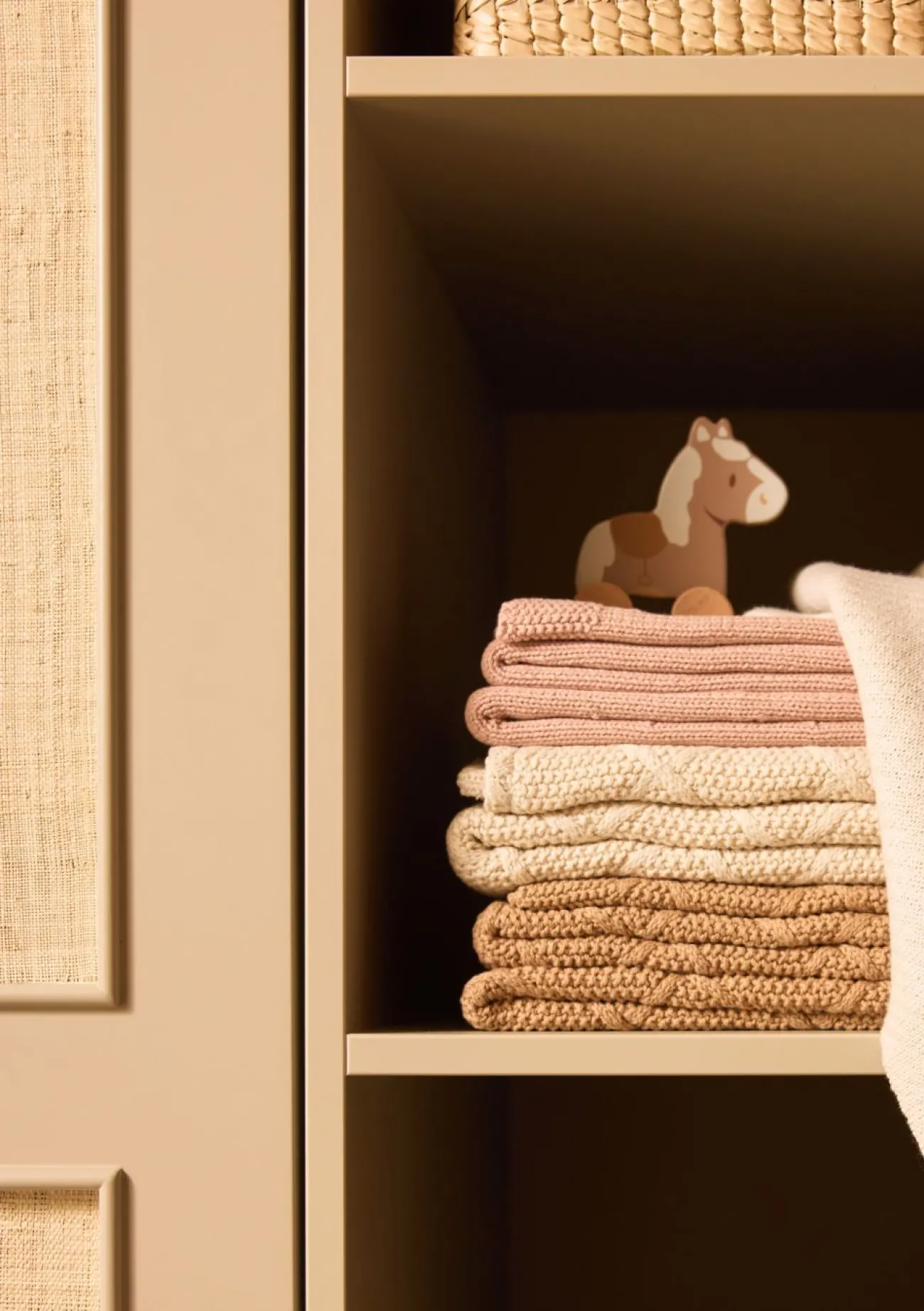 Pure Nostalgie versprüht dieses hölzerne Pferd von der Marke JOLLEIN, bekannt für wunderschöne hochwertige Produkte für Babys und Kleinkinder. Es ist mit vier leichtgängigen Rädern ausgestattet, so dass dein Liebling es durchs Kinderzimmer rollen lassen kann. Wenn es mal nicht im Gebrauch ist, macht es eine ausgesprochen gute Figur im Spielzeugregal. Natürlich ist der süße Blickfänger eine wunderbare Geschenkidee –optimal für Kinder ab eins.