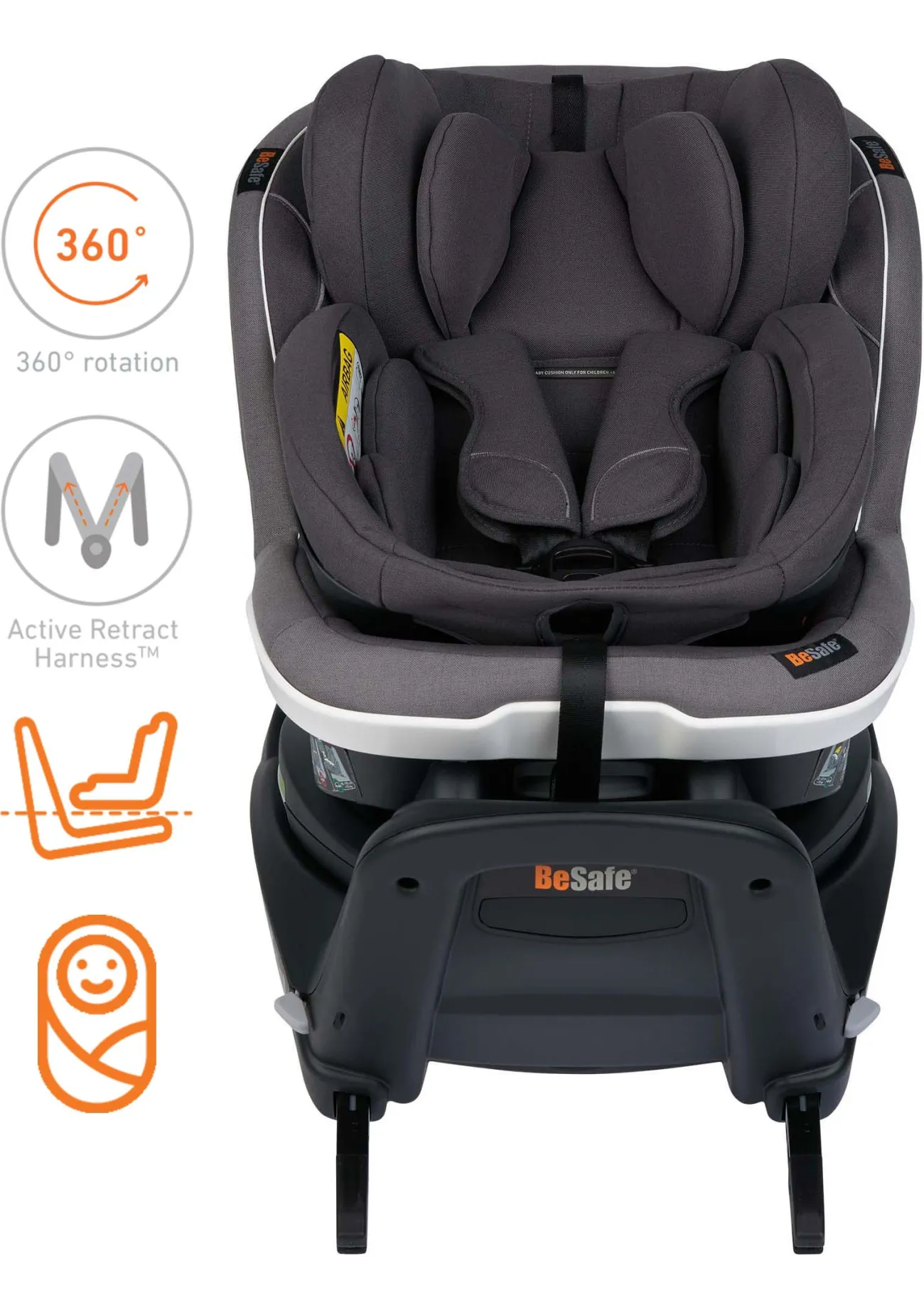 - ein drehbarer Kindersitz inklusive Baby-Shell™ und Newborn Hugger™