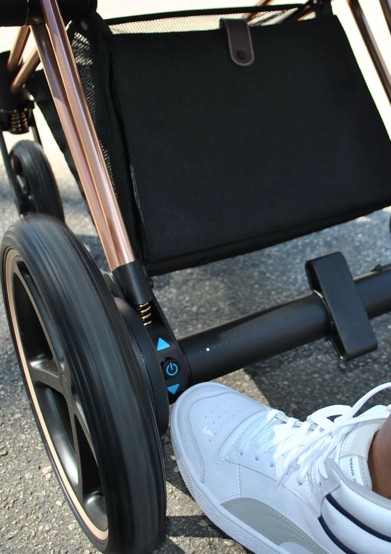 - Wippfunktion: diese Weltneuheit bewegt den e-Kinderwagen automatisch hin und her, um das Baby zu beruhigen und es sanft in den Schlaf zu wiegen