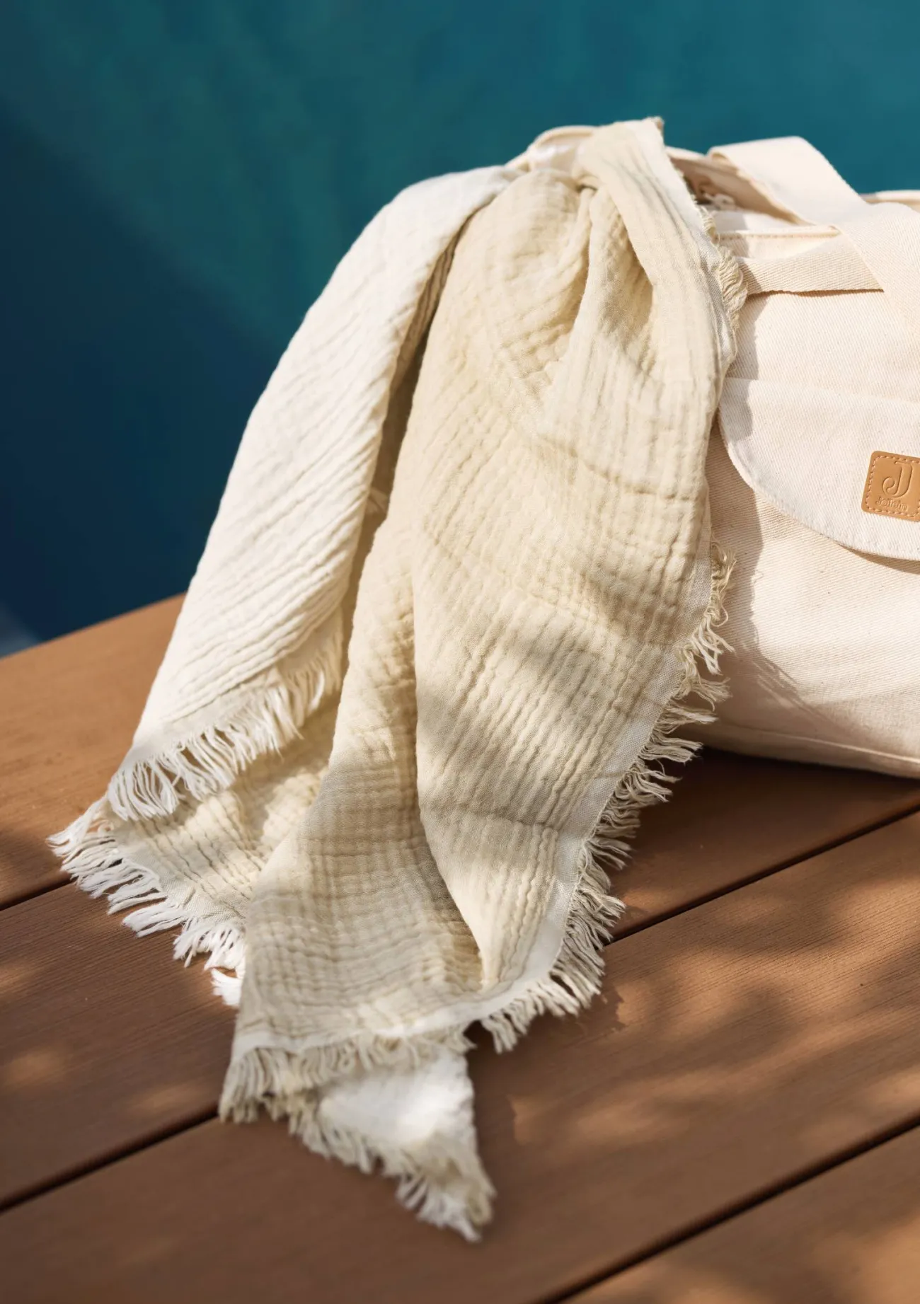 Zum Einkuscheln, Wohlfühlen und Mitnehmen: die Musselin-Babydecke aus Bio-Baumwolle von JOLLEIN