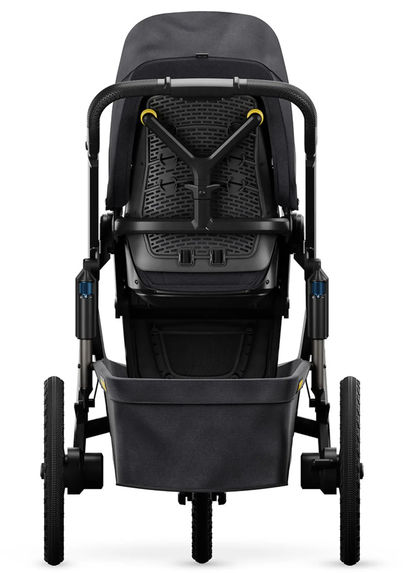 Das Gestell des Wagens überzeugt nicht nur durch die Heck- und Frontfederung, den unplattbaren Reifen, der leichten Wendigkeit und der verstellbaren Griffhöhe sondern auch durch das zeitlose Design. Durch die eingebaute 6-Stufen-Federung erobert ihr mit eurem kleinen Schatz komfortabel jedes Terrain!