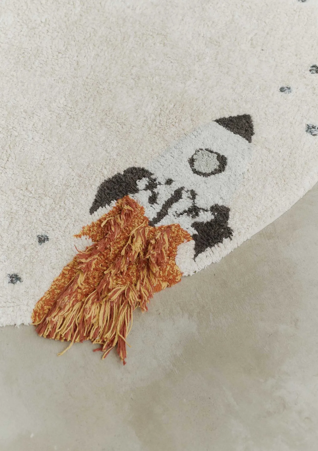 Dieser niedliche Kinderteppich von LORENA CANALS lässt Kinderherzen höher schlagen. Der runde Teppich ist in Handarbeit entstanden, besteht aus natürlichen Baumwollfasern und überrascht mit aufregenden Weltraum-Motiven. Ob Planet, Rakete, UFO oder Sternschnuppe – die liebevoll gestalteten Details schaffen den Blickfang und machen das Modell zu einem ganz besonderem Accessoire im Kinderreich.