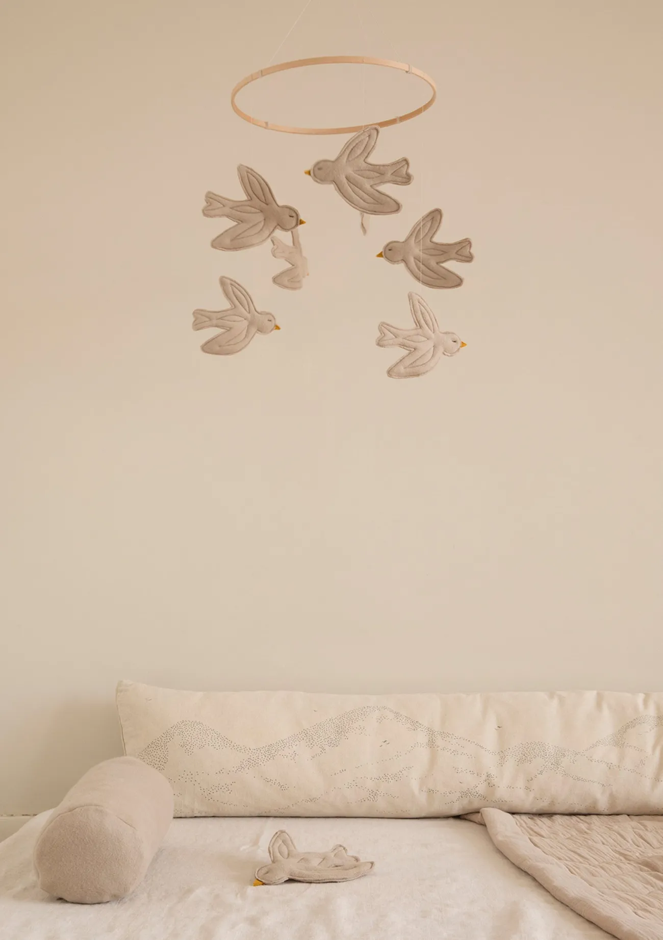 Dieses schöne Mobile besteht aus sieben Baumwoll-Vögeln, die deinem Kind jede Menge Freude bereiten werden! Sie sind perfekt, um beobachtet zu werden und ein Gefühl für räumliches Sehen zu entwickeln!