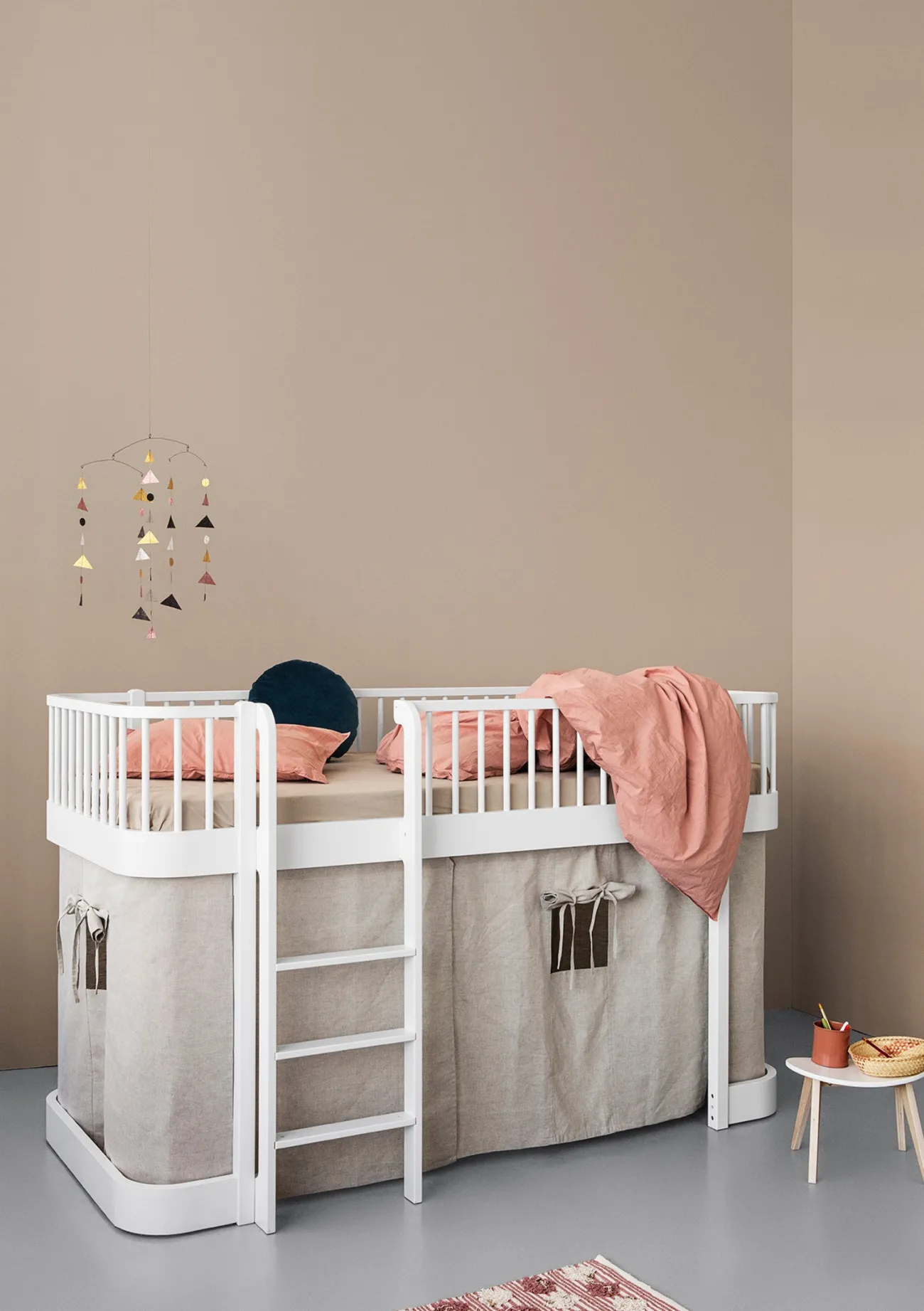 Jedes Kind liebt es, sein eigenes Reich um sich zu haben! Diesen geheimen Rückzugsort schenkst du deinem Kind, mit einem Vorhang für sein Mini+ Etagenbett von OLIVER FURNITURE. Die eingenähte Türe ist der Eingang in die Räuberhöhle und die integrierten Fenster sind perfekt, um die Umgebung zu beobachten!