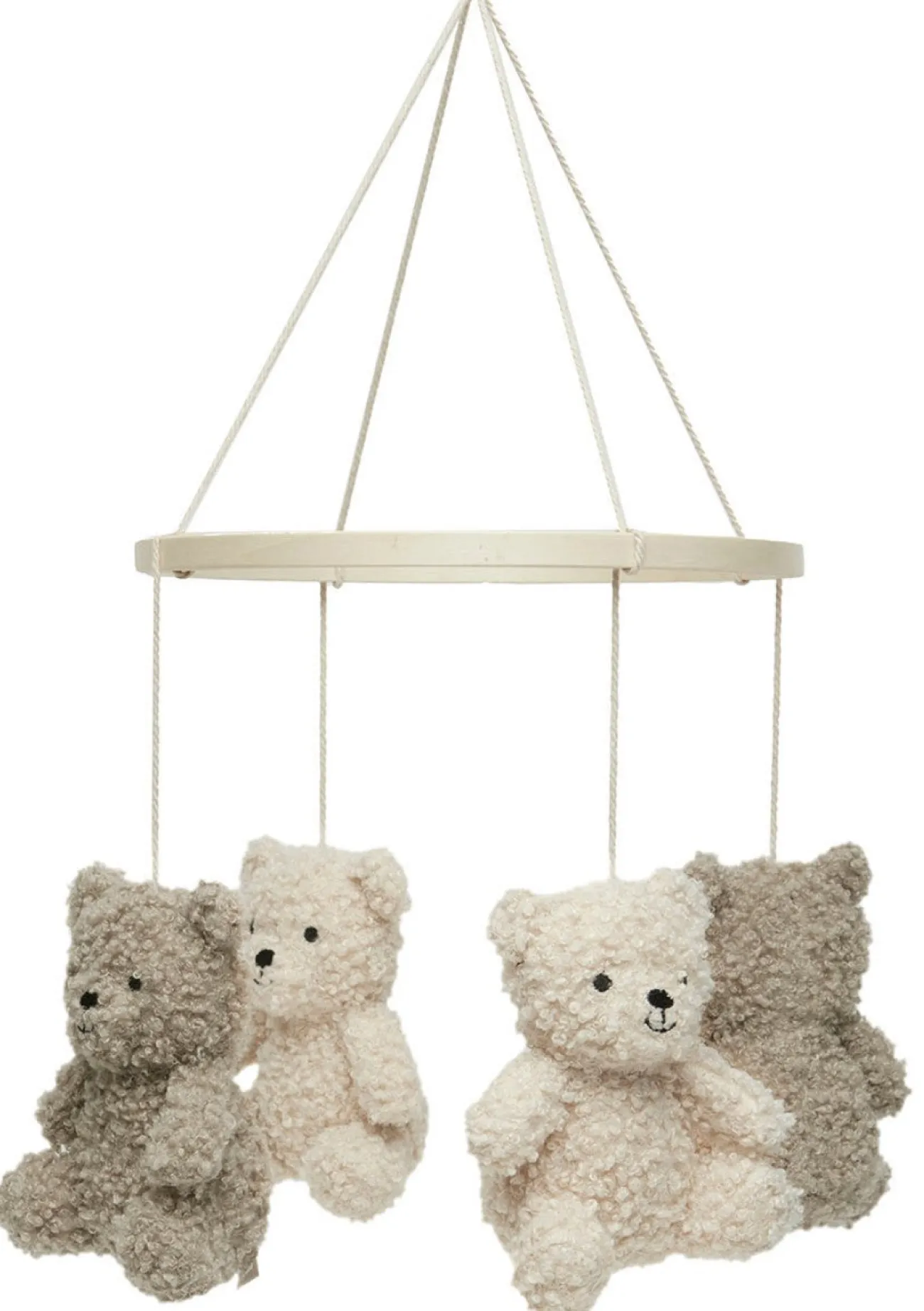 Das schöne Mobile mit niedlichen Bär-Anhängern sorgt für Spaß und ruhigen Schlaf im Babybett. Die flauschigen Fellfreunde wachen über dein Baby und schenken süße Träume. Auch ein tolles Geschenk zur Geburt!
