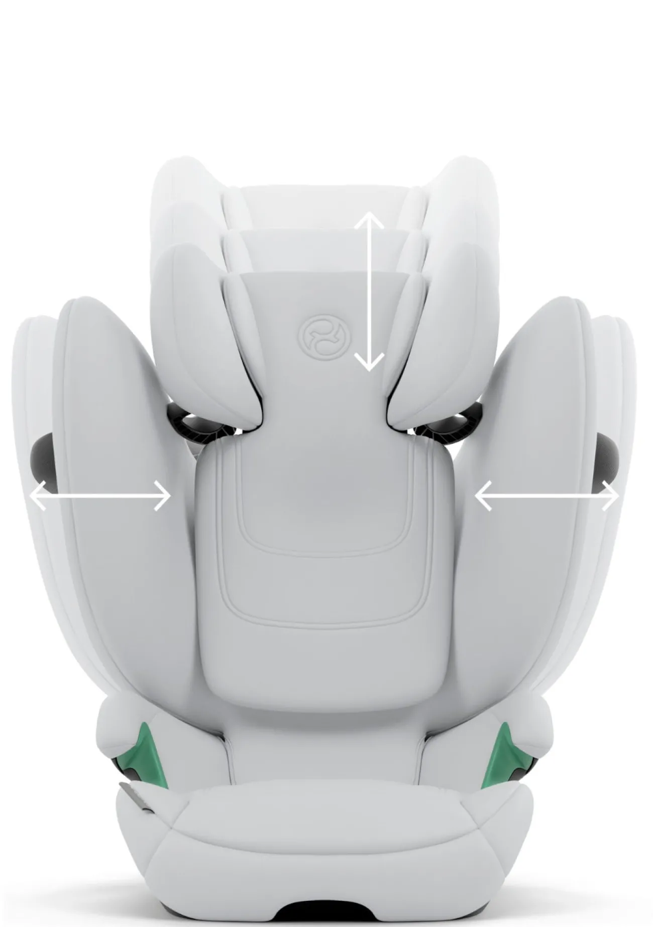 Die extrabreite, weich gepolsterte Sitzfläche sowie ein integriertes Belüftungssystem sorgen auch an heißen Tagen für angenehmen Sitzkomfort. Durch die 12-fach höhenverstellbare Kopfstütze wächst der Sitz in jeder Phase mit. Ob mit ISOFIX oder nur mit dem Fahrzeuggurt installiert – der Solution G2 passt sich flexibel deinem Alltag an.