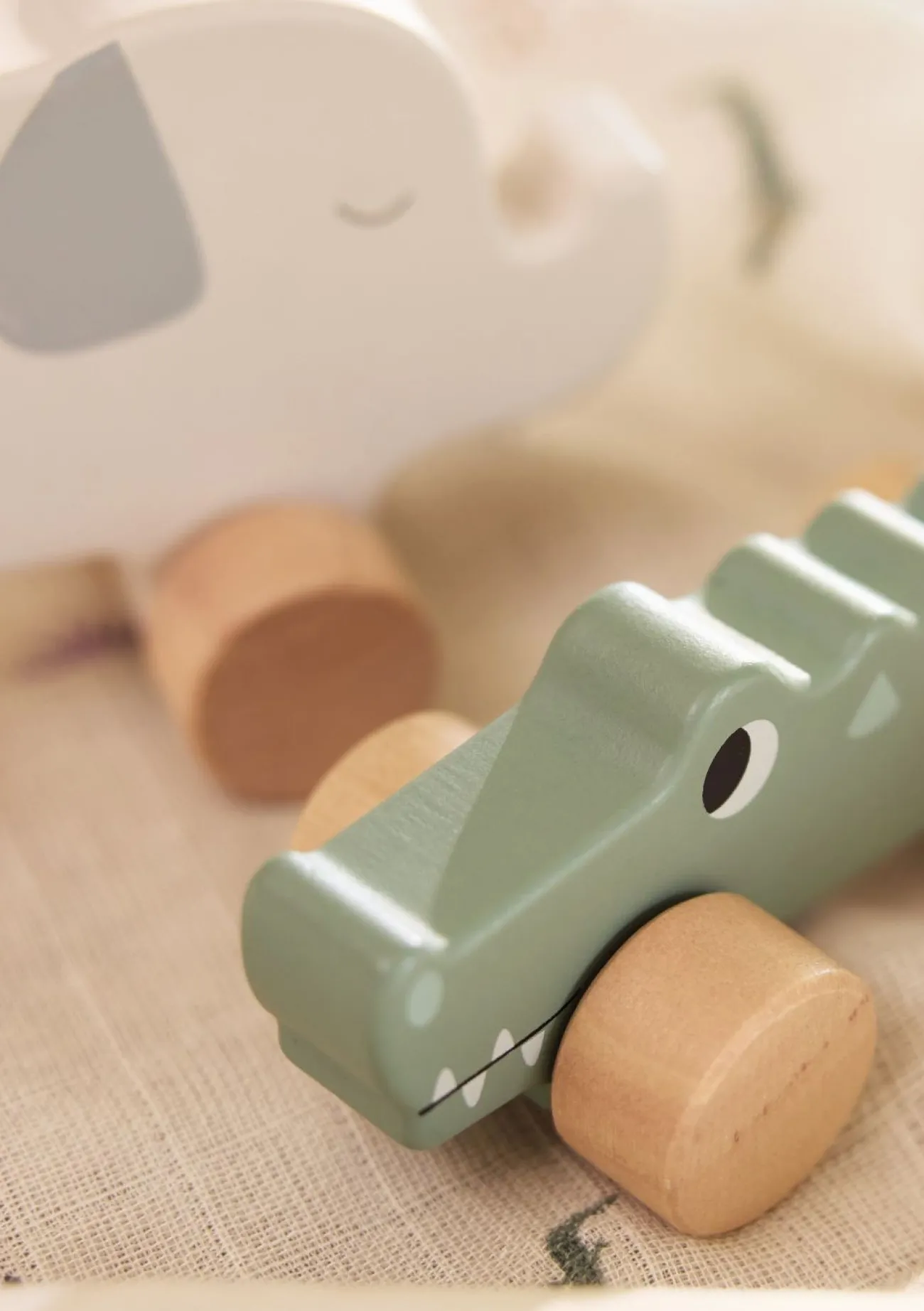 Zur lustigen Fahrt durchs Kinderzimmer lädt dieses freundliche Krokodil ein. Es kommt aus der angesagten Jungle Jambo-Kollektion von der Marke JOLLEIN, bekannt für wunderschöne hochwertige Produkte für Babys und Kleinkinder. Das Holzkrokodil verfügt über vier leichtgängige Räder, so dass es spielend durch die Gegend gerollt werden kann. Das süße Spielzeug ist ein Blickfänger und stellt eine wunderbare Geschenkidee dar – optimal für Kinder ab eins.