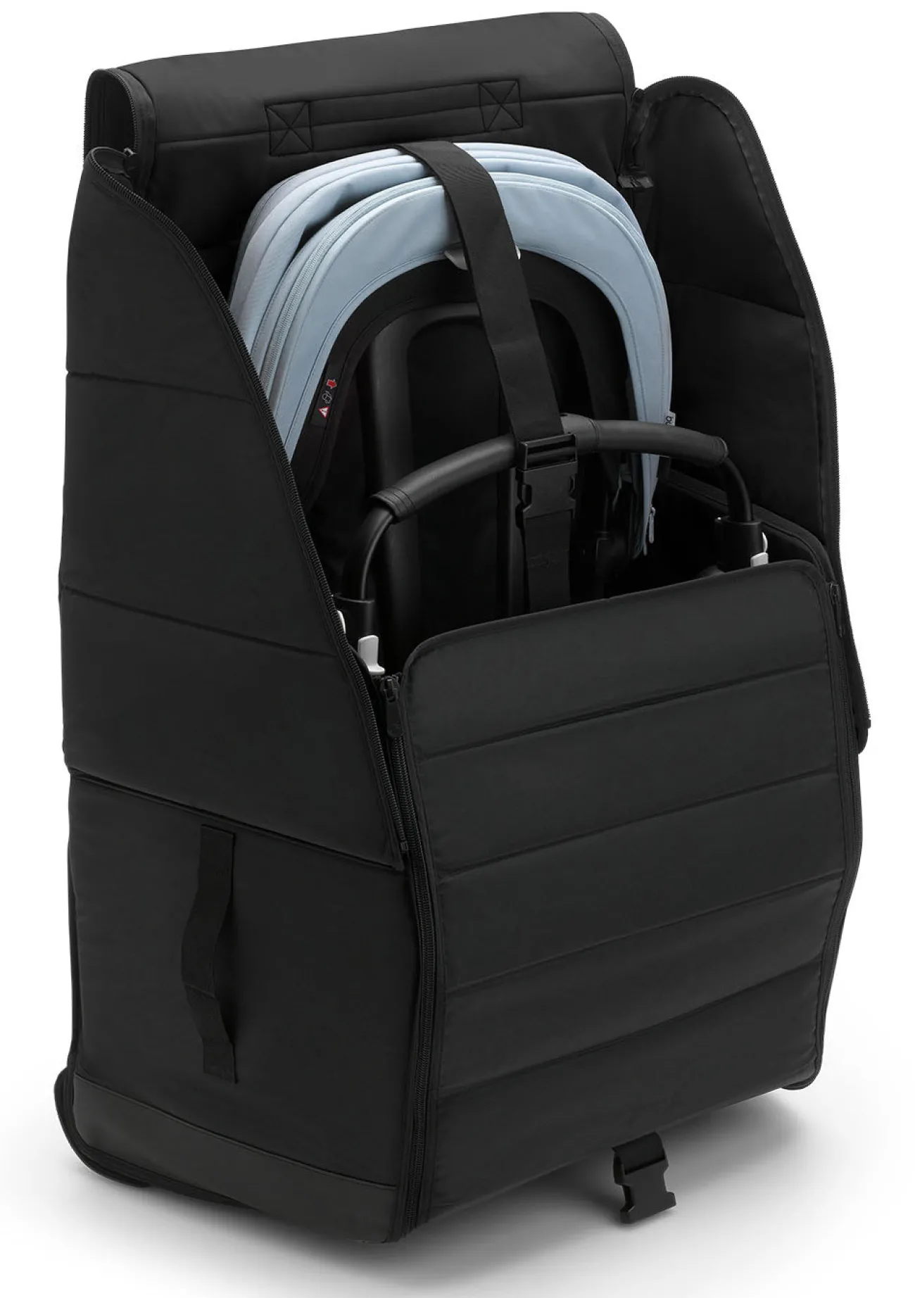 Bestens geschützt gelangt euer BUGABOO Kinderwagen in dieser Schutztasche überall mit hin. Die praktische Transporttasche sorgt dafür, dass alles bestens verstaut und geschützt ist. Die sanften Rollräder, der Schultergurt und die komfortablen Tragegriffe erleichtern euch die Gepäckaufgabe am Flughafen und der Freisteh-Modus macht das ein- und auspacken des Wagens zu einem Kinderspiel. Sollte die Tasche nicht genutzt werden, lässt sie sich, dank des kompakten Faltmaßes, flexibel verstauen.