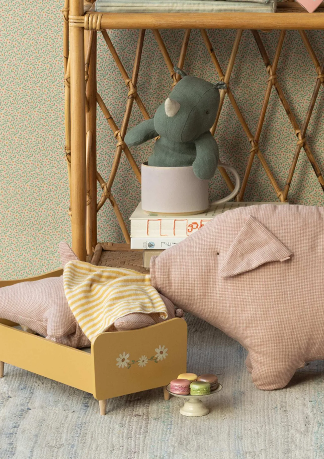 Dieses Kuscheltier gehört zu den beliebtesten Figuren des dänischen Labels Maileg. Es erinnert an das berühmte Stoff-Schwein aus Astrid Lindgrens „Lotta aus der Krachmacherstraße“. Spätestens seit diesem Kinderbuchklassiker gilt das Schweinchen als echtes Lieblingsstofftier im Kinderzimmer – und Polly bringt genau diesen Zauber mit.