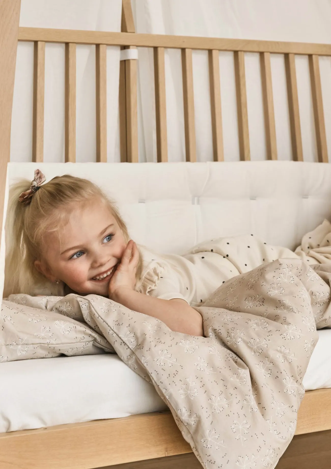 In den ersten Lebensmonaten ist das Babybett der wichtigste Ort für dein Kind. Hier findet es Ruhe, Geborgenheit und die Möglichkeit, sanft in den Schlaf zu gleiten. Das Linea Babybett aus massiver Eiche schenkt genau diesen besonderen Rückzugsort. Mit seiner warmen Holzoptik und dem klaren, skandinavischen Design schafft es eine Atmosphäre, in der sich dein Baby sich vom ersten Tag an sicher und geborgen fühlt.
