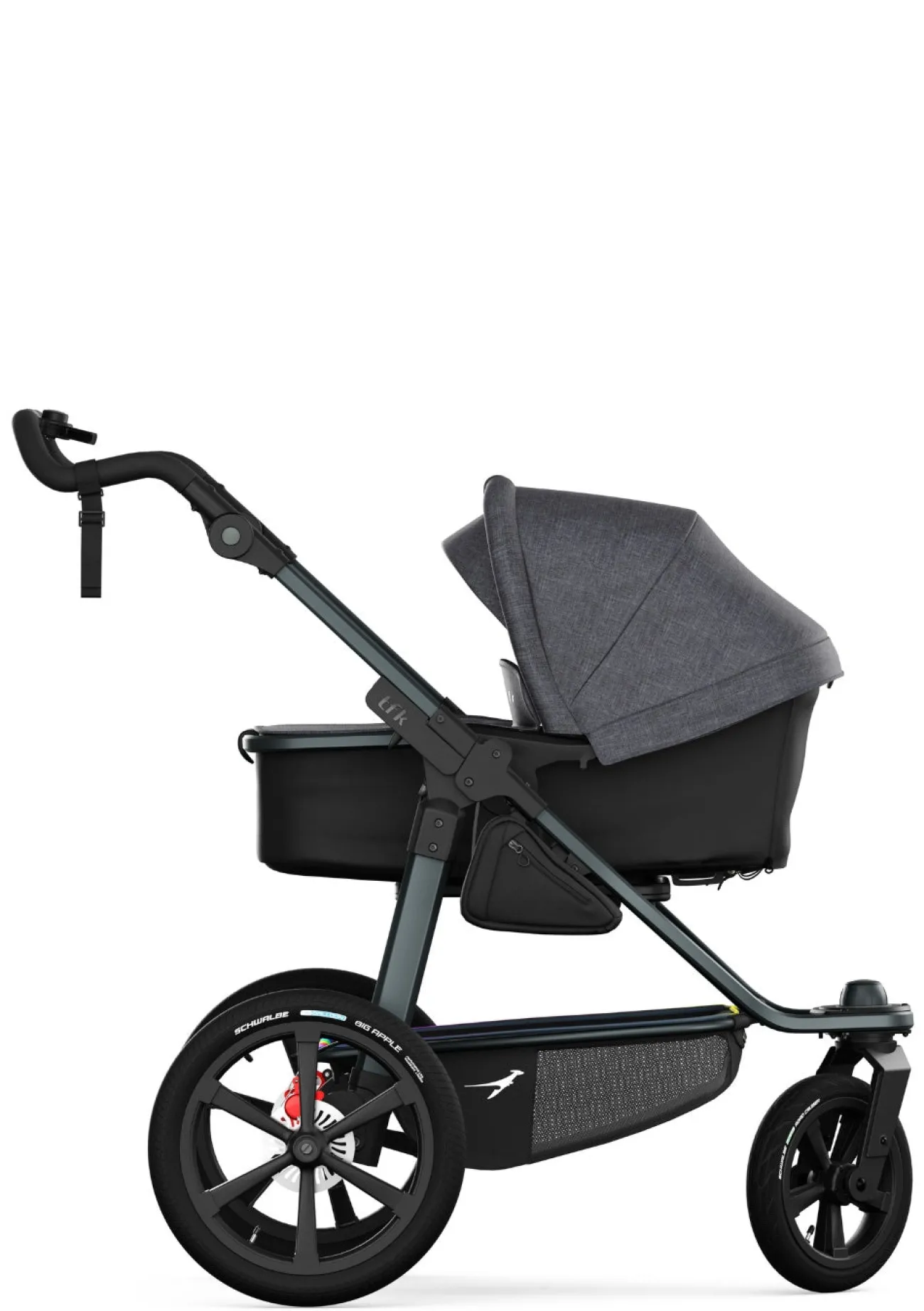 Ob beim Joggen, beim Spaziergang im Park oder auf anspruchsvollerem Terrain – der tfk pro ist gemacht für Eltern, die aktiv unterwegs sind und dabei höchsten Wert auf Qualität, Komfort und Sicherheit legen. Als TÜV-zertifiziertes Modell mit überarbeitetem Bremssystem (mit integrierter einhändig bedienbarer Hand- und Feststellbremse), optimaler Bereifung und cleverem Zubehör ist er der perfekte Partner für sportliche Familien, die keine Kompromisse machen wollen.