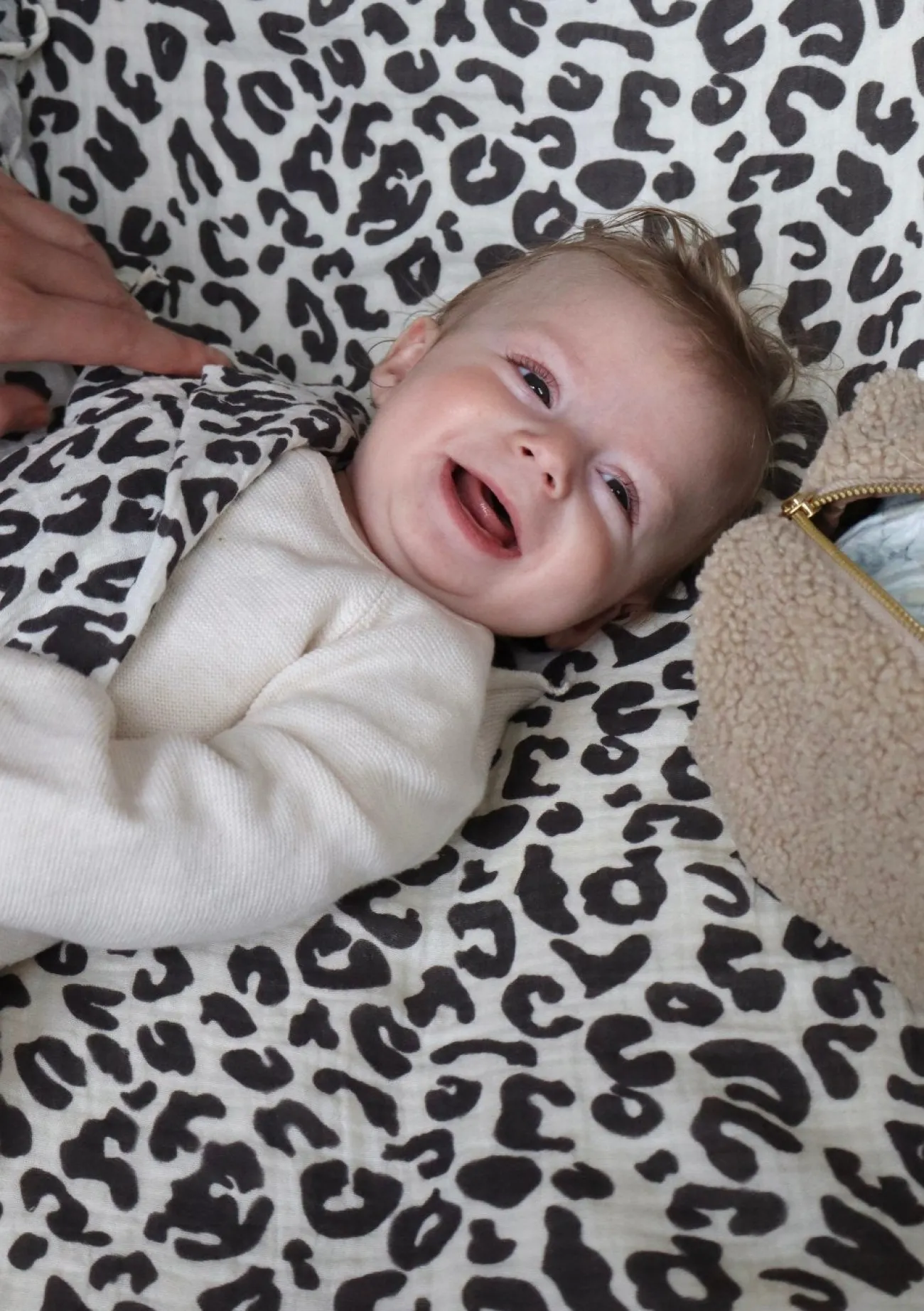 Mit seinem großzügigen Format von 120 x 120 cm eignet sich dieses Tuch ideal für Neugeborene und Kleinkinder, besonders dann, wenn du eine größere Abdeckung oder mehr Flexibilität brauchst. Der moderne Leo-Print macht es dabei zu einem echten Hingucker, zuhause wie unterwegs.