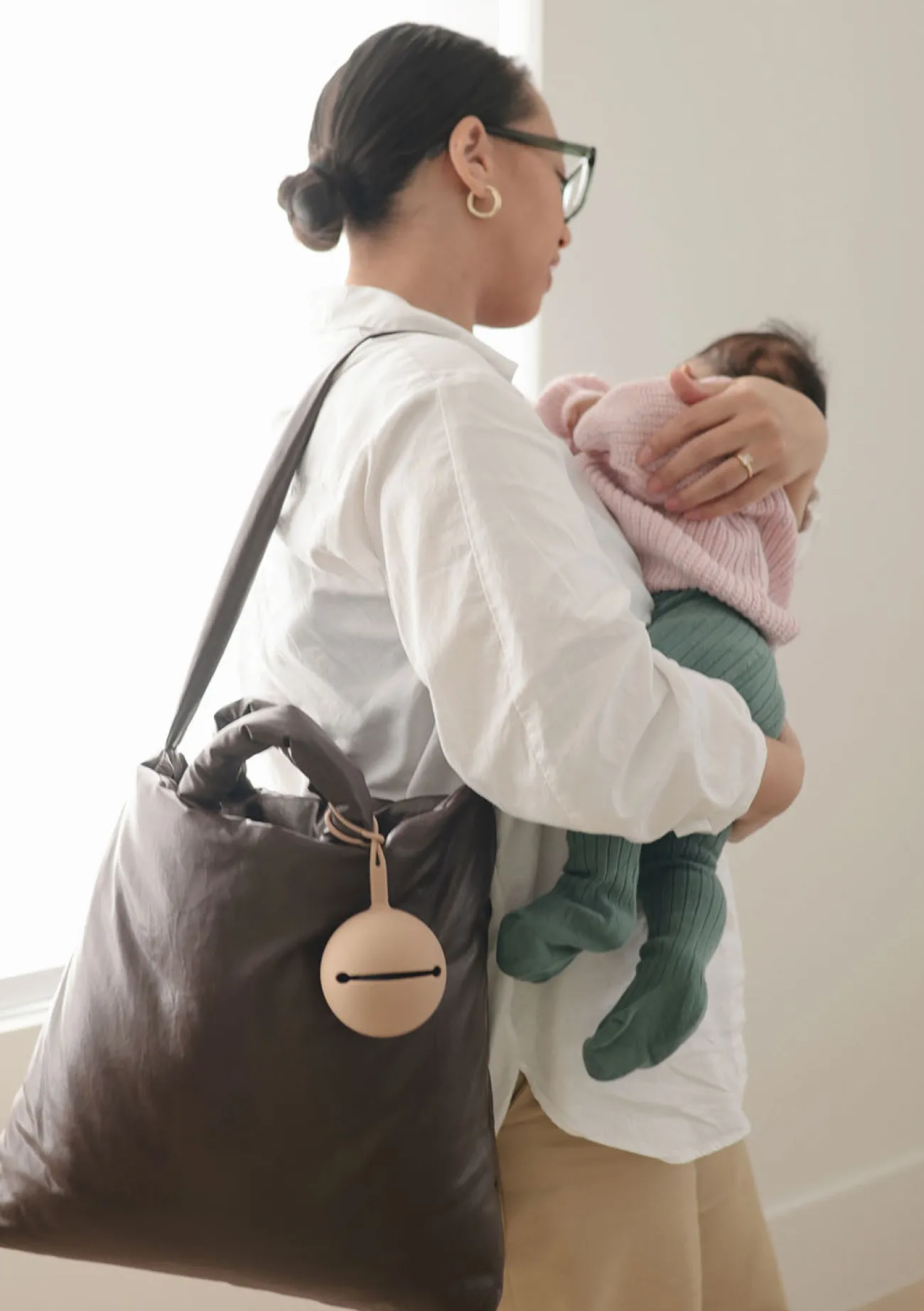 Mit einem stabilen Riemen und Platz für bis zu drei Schnuller lässt sich diese kleine Schnullerbox einfach überall befestigen, z.B. an der Wickeltasche oder am Kinderwagen.