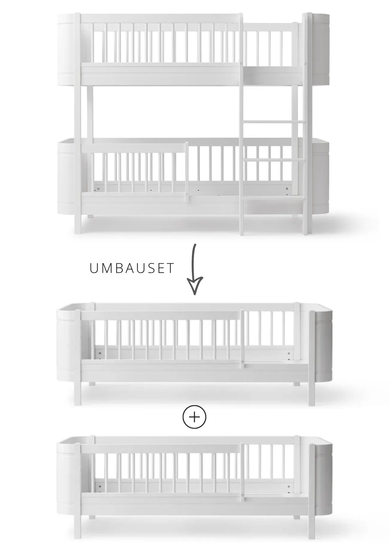 Nähere Informationen zu den verschiedenen Umbaumöglichkeiten der Oliver Furniture Wood Mini+ Serie findest du in dieser .
