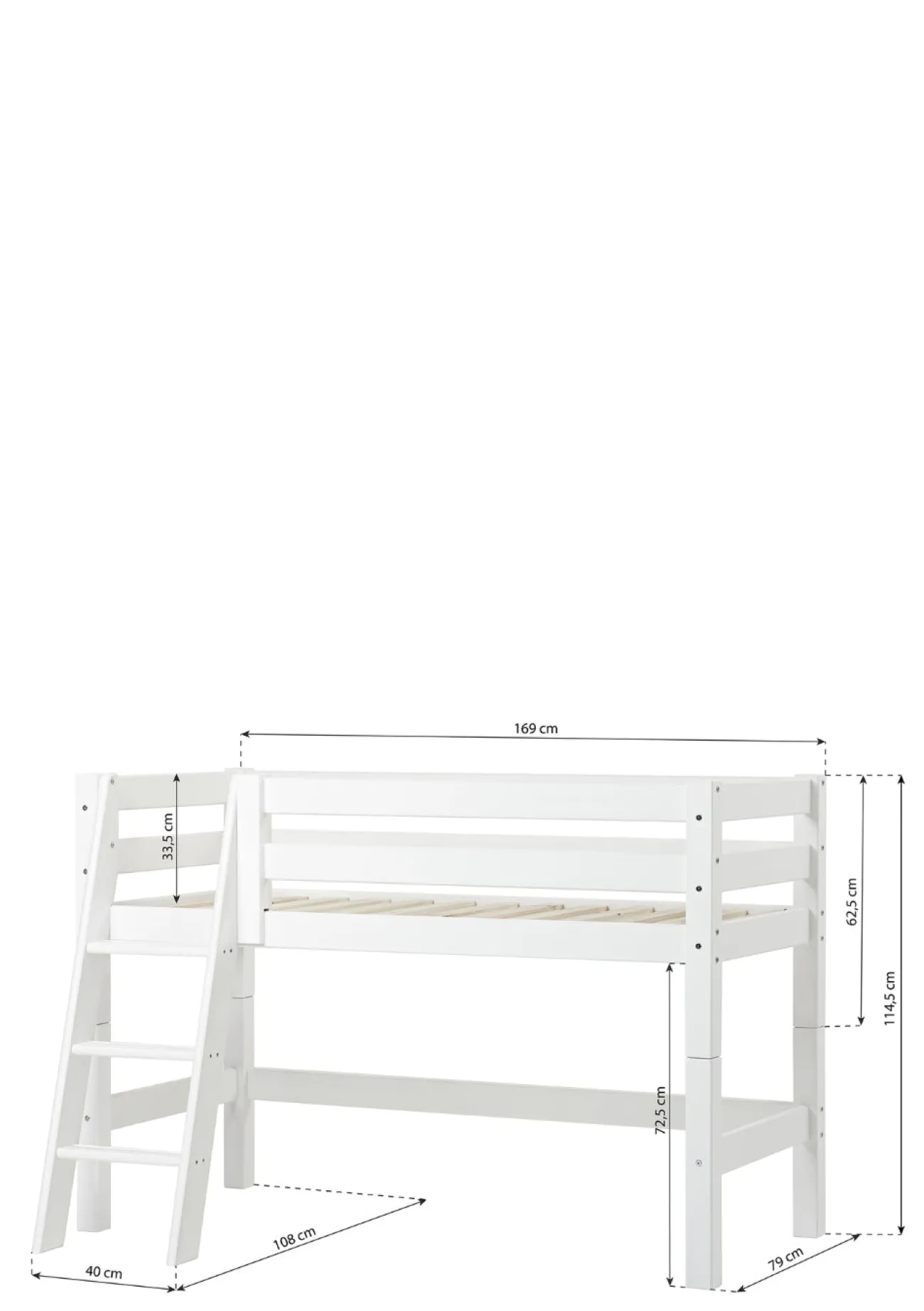 - Bettmaße, gerade Leiter: L 169 x H 114 x T 84 cm
