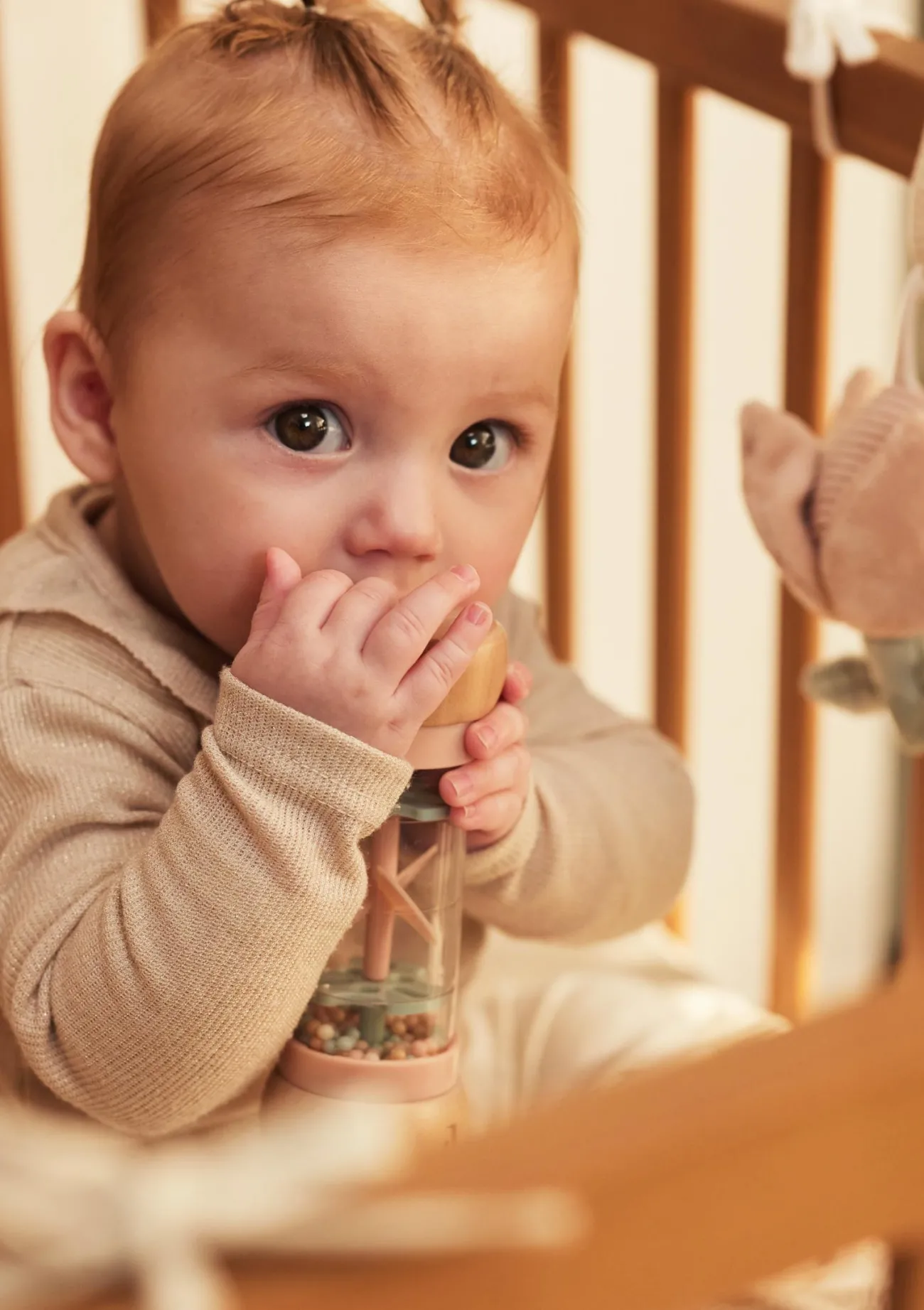 Die hölzerne Regen-Rassel Lovely Birds von JOLLEIN ist mehr als nur ein Spielzeug-Sie ist ein wunderbares Erlebnis für kleine Hände und Ohren und fördert spielerisch die Sinne deines Babys. Sobald dein Baby den Regenmacher kippt, rieseln die kleinen Kügelchen durch die Holzröhren und erzeugen ein beruhigendes Klangspiel, das an sanften Sommerregen erinnert. Das unterstützt nicht nur das Hörverständnis, sondern auch die visuelle Wahrnehmung und Motorik.