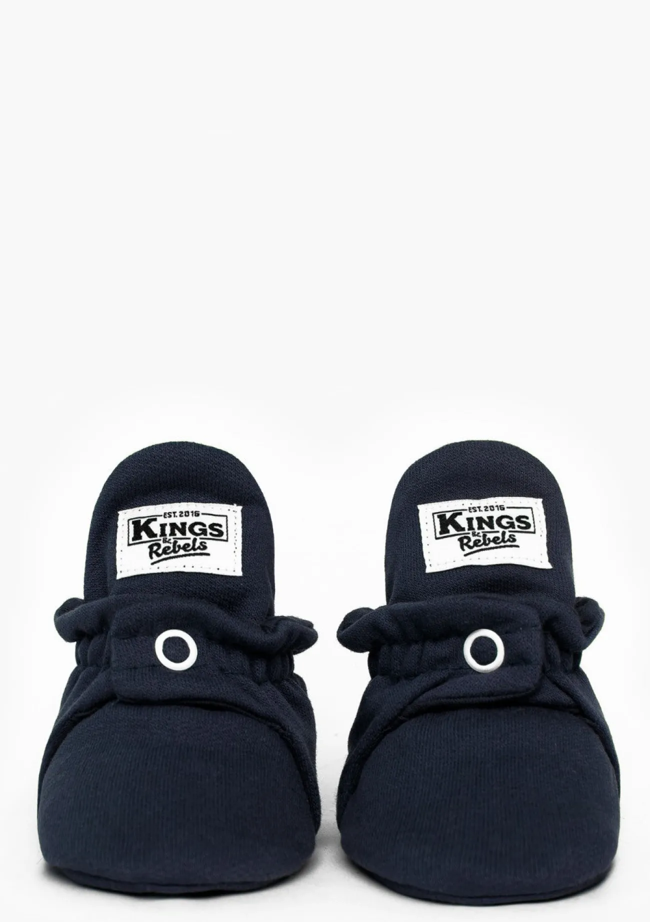 Diese niedlichen Babyschuhe von KINGS & REBELS sind dank des praktischen Druckknopf-Verschlusses ruckzuck über den kleinen, strampelnden Babyfuß gezogen – und rutschen auch nicht wieder ab! Die hautfreundlichen und atmungsaktiven Eigenschaften der umweltfreundlichen Baumwolle erzeugen ein besonders angenehmes Tragegefühl. Da sich die Booties an die individuelle Fußform deines Kindes anpassen, schränken sie die gesunde Entwicklung der Kinderfüße nicht ein und sind superbequem.