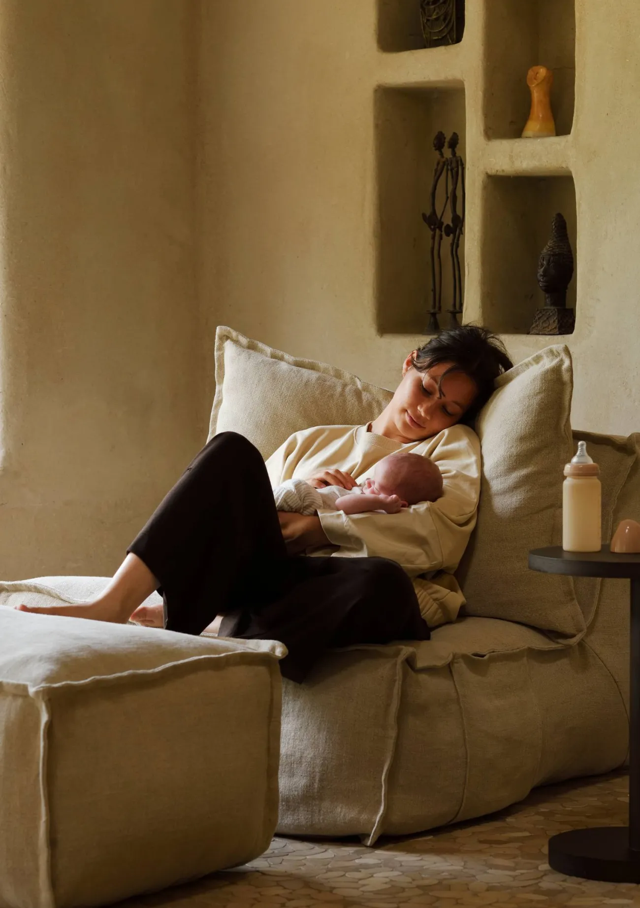Dieser extra weiche Polsterhocker lädt zum Füße hochlegen und Verweilen ein und macht jede Pause, mit oder ohne Baby, noch ein bisschen komfortabler. Mit seinem hochwertigen Bezug aus natürlichem Leinen, der weichen Polsterung und dem klaren, modernen Design fügt sich der Hocker harmonisch in jedes Wohnambiente ein. Das Modell bietet deinen Beinen und Füßen genau die Entlastung, die es für ein entspanntes Lounge-Erlebnis braucht – ob zum Lesen, Ausruhen oder einfach zum Ankommen nach einem langen Tag.