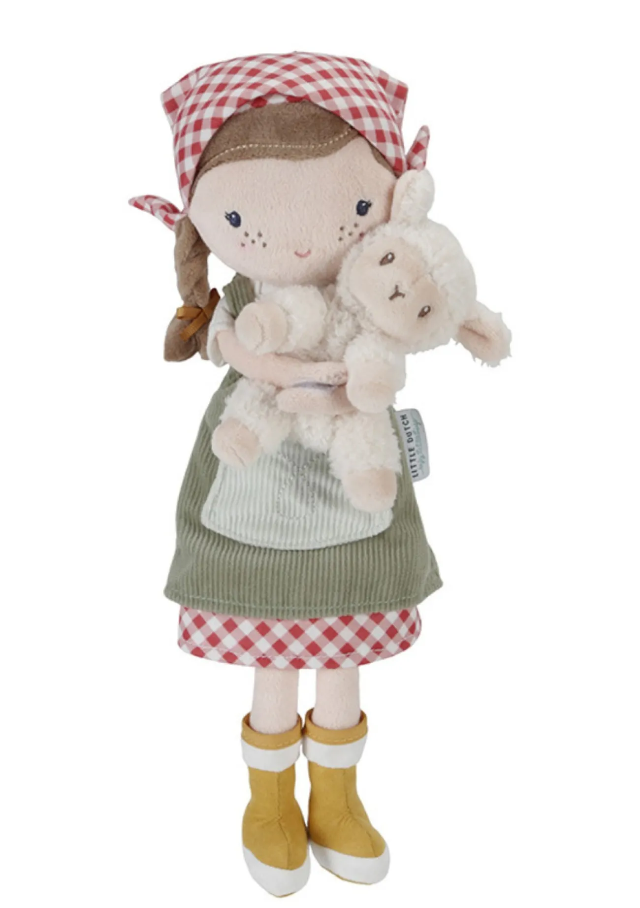 Mit einem Schäfchen im Arm präsentiert sich diese niedliche Stoffpuppe Rosa aus der Little Farm-Kollektion von LITTLE DUTCH. Die Bäuerin Rosa lädt zum Spielen und Kuscheln ein und wird deinem Kind eine treue Begleiterin sein. Versendet wird die Puppe im schönen Pappkarton, wodurch sie sich optimal zum Verschenken eignet.