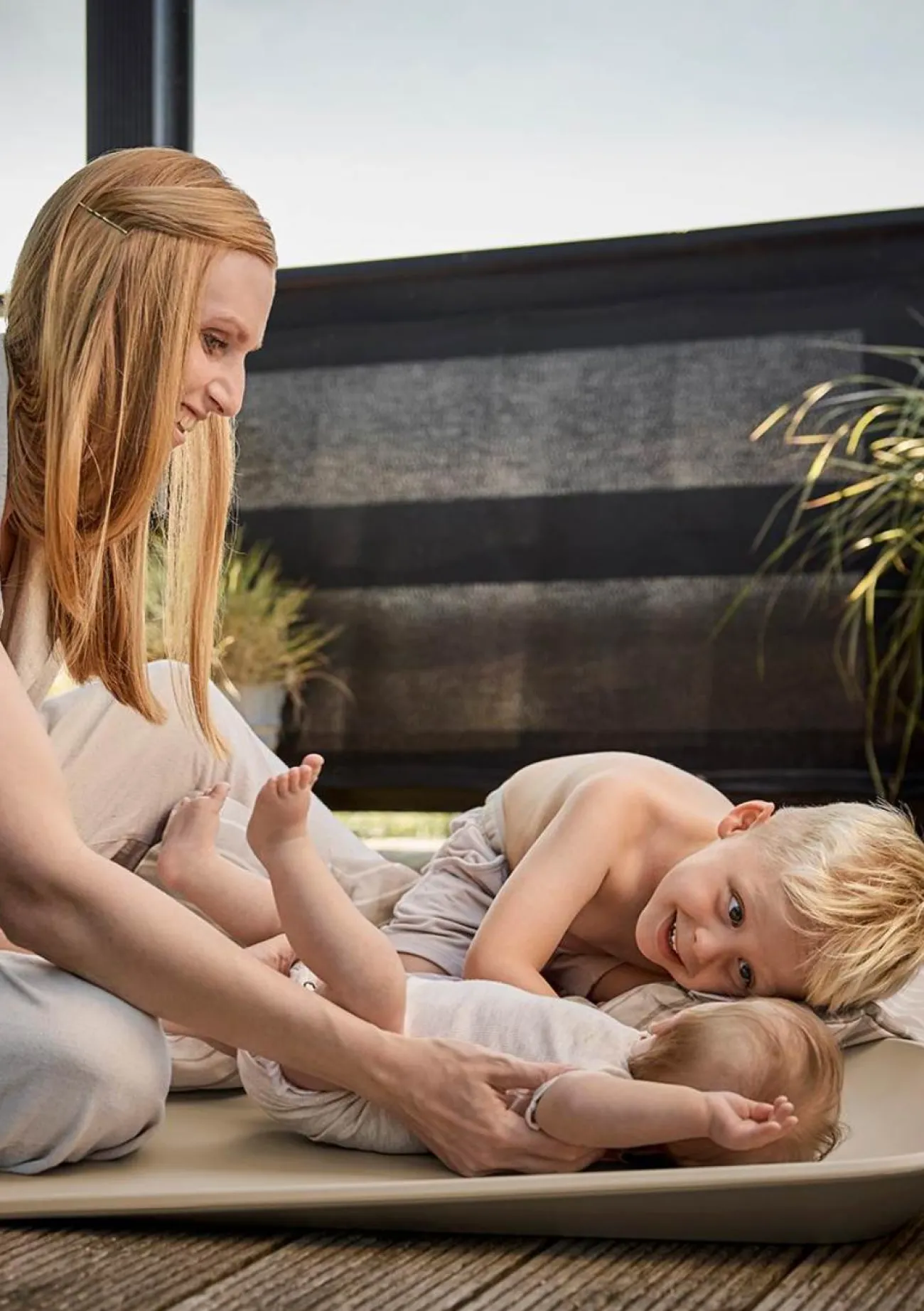 Das Original aus Dänemark: Wickelauflage LEANDER Matty™ – jetzt im kompaktem Mini-Format.