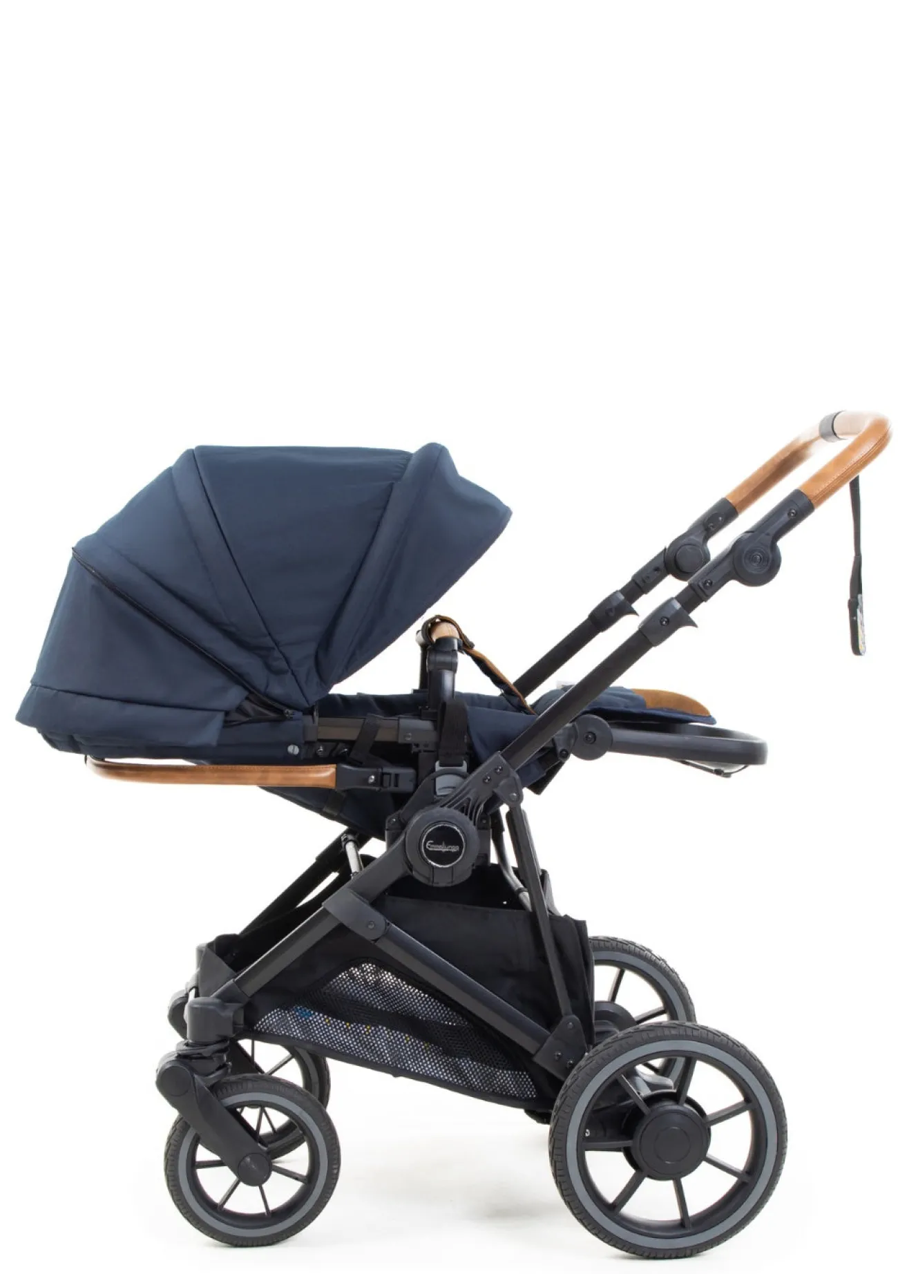 - Die Outdoor-Variante ist mit braunen, lederähnlichen Akzenten aus pflegeleichtem Leatherette gestaltet und verleiht dem Kinderwagen einen robusten, naturnahen Look.